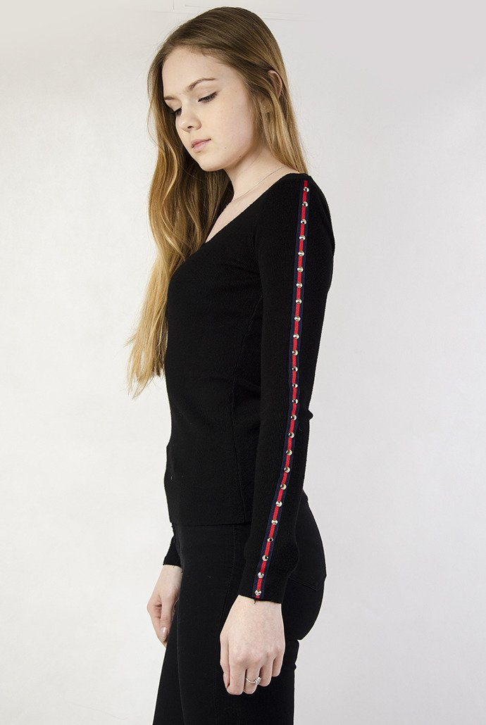 Czarna, przylegająca bluzka z ćwiekami u boku