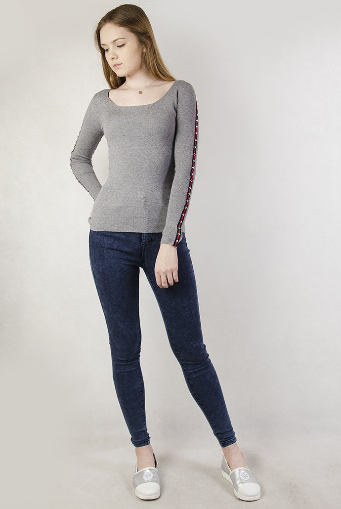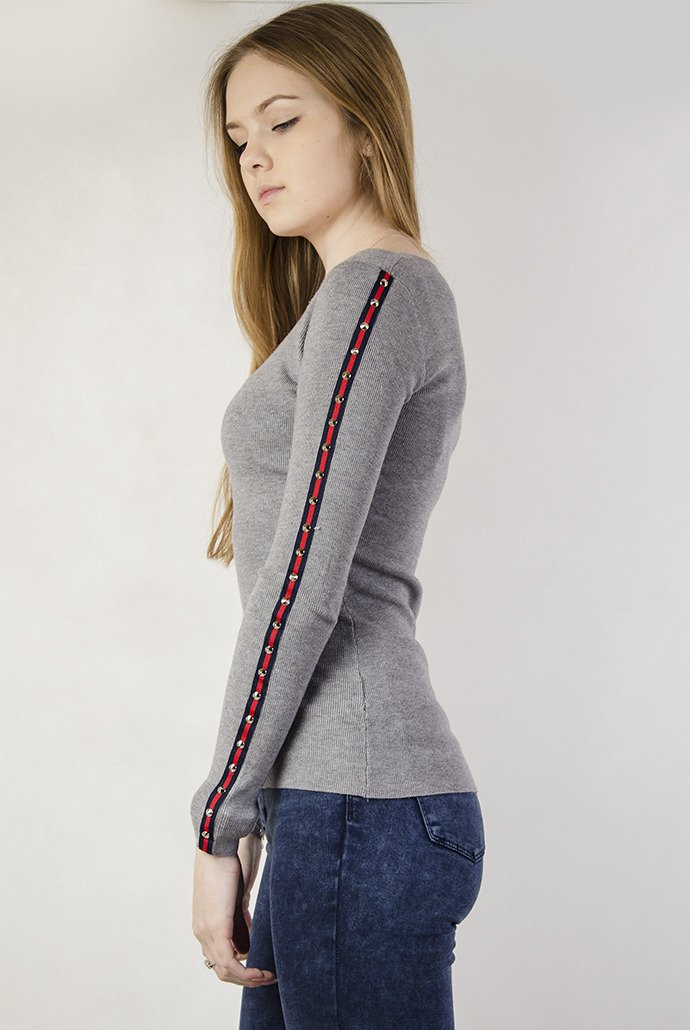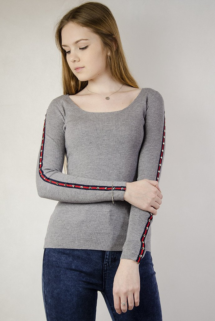 Szara, przylegająca bluzka z ćwiekami u boku