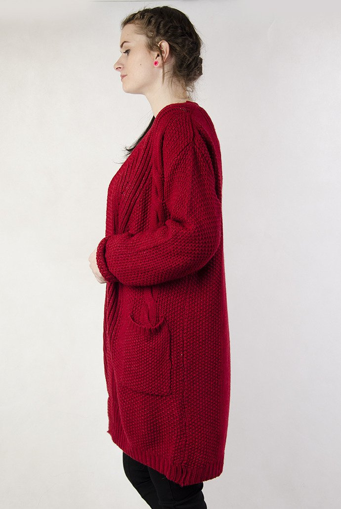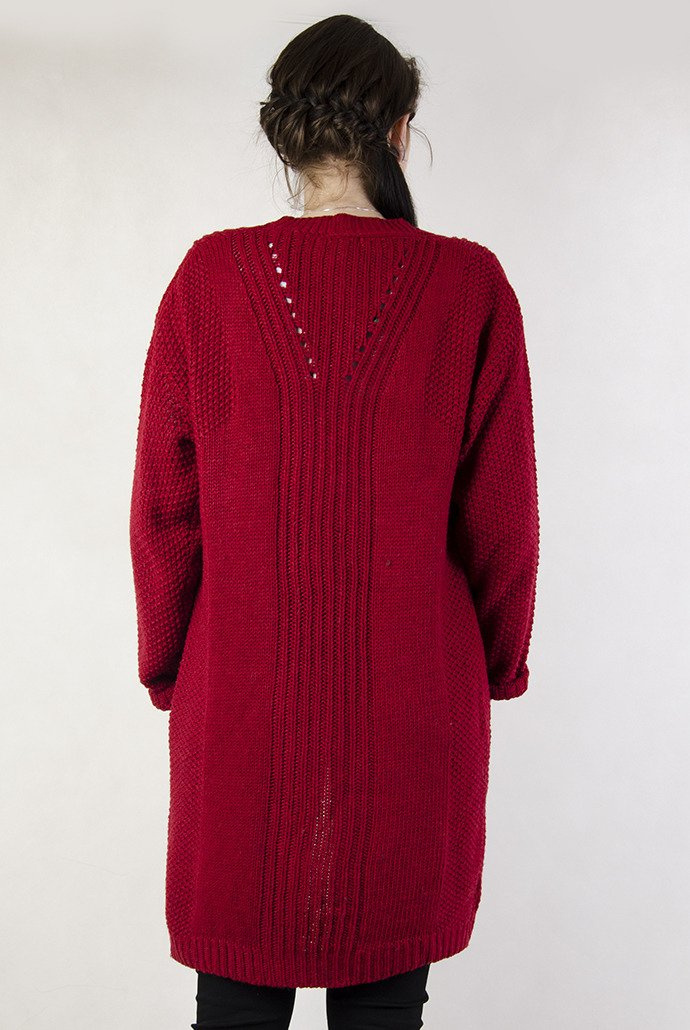 Długi czerwony sweter z kieszeniami
