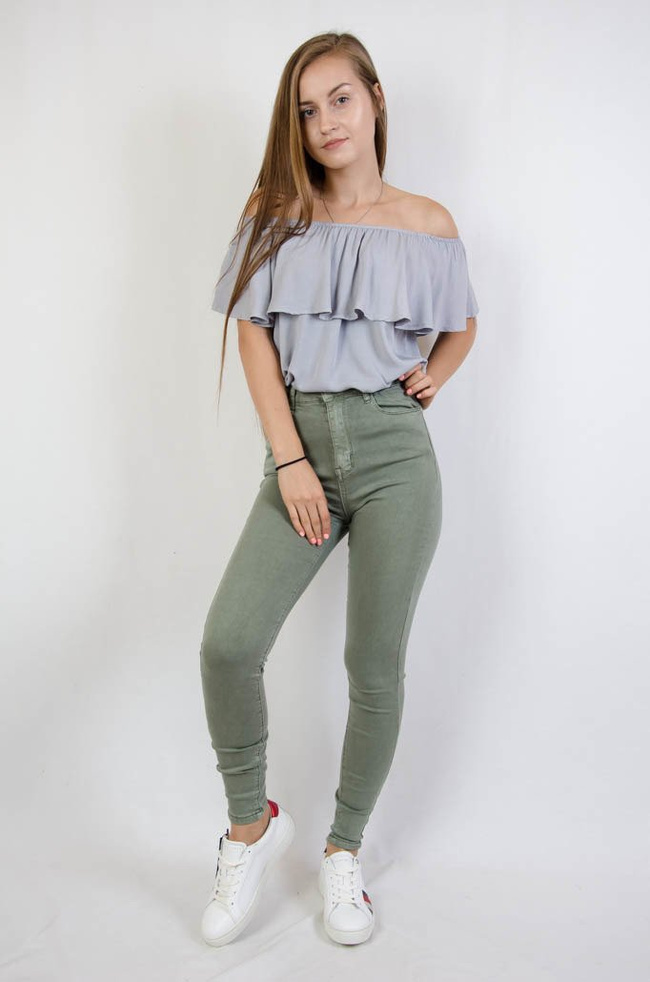 Zielone dopasowane spodnie z wysokim stanem