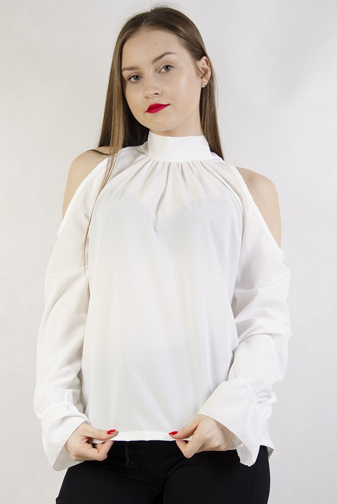 Biała bluzka na długi rękaw z odkrytymi ramionami