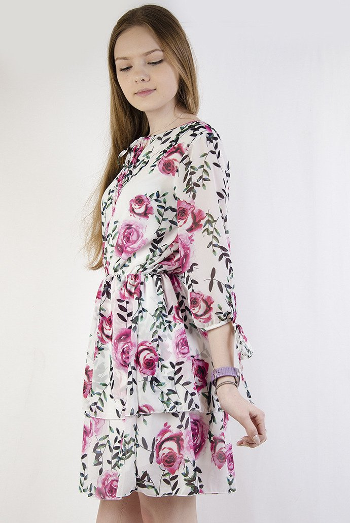 Kwiecista sukienka z wiązaniami przy rękawach