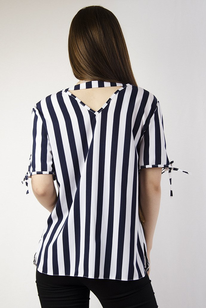 Bluzka w biało granatowe pasy z wycięciem na plecach