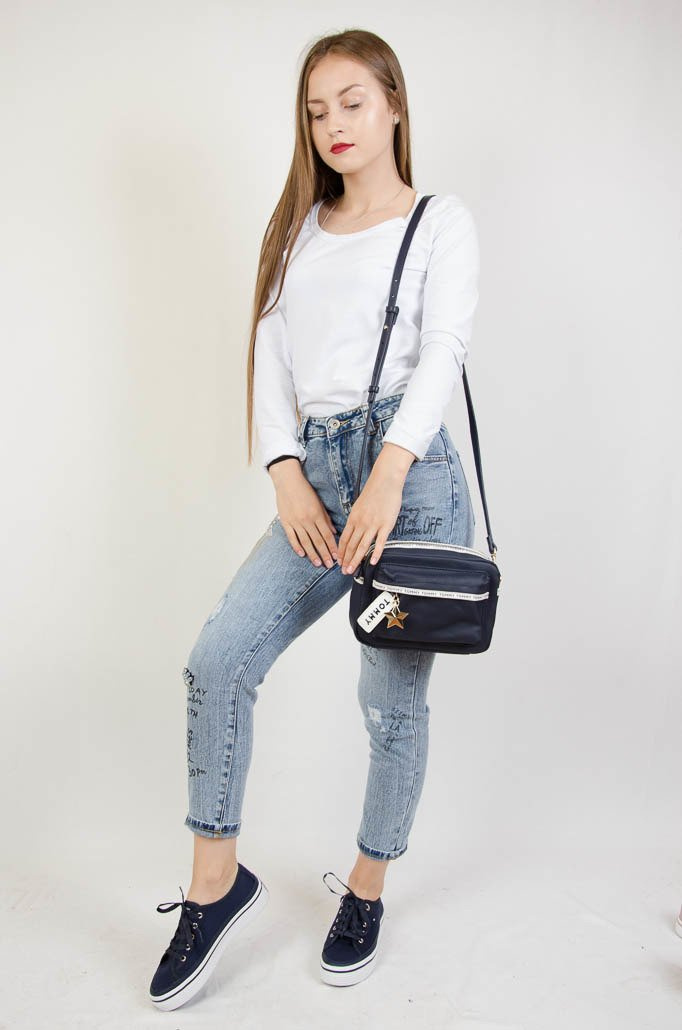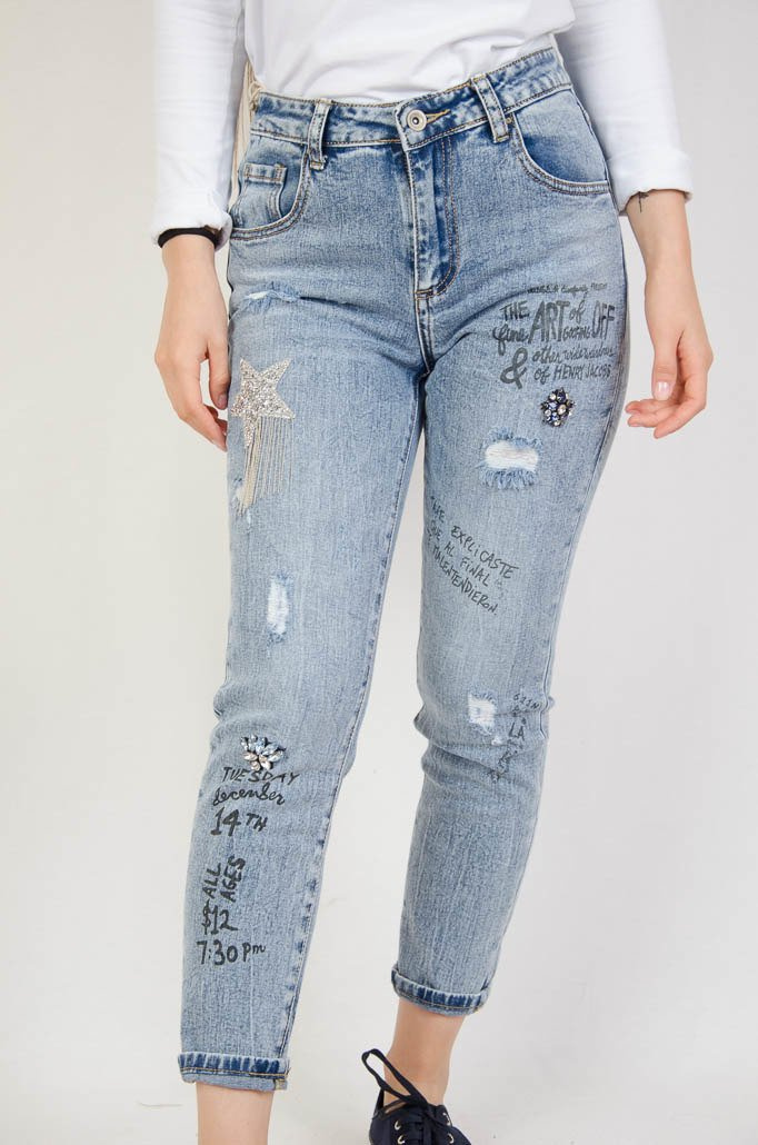 Spodnie jeansowe typu BOYFRIEND z napisami.