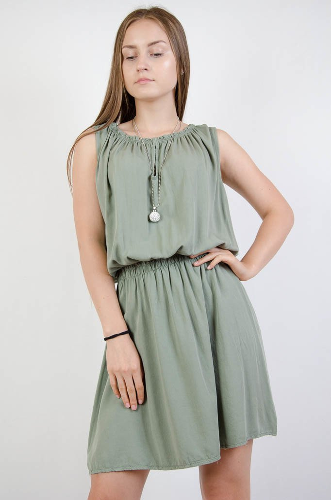 ZIELONA LUŹNA SUKIENKA Z GUMĄ W PASIE