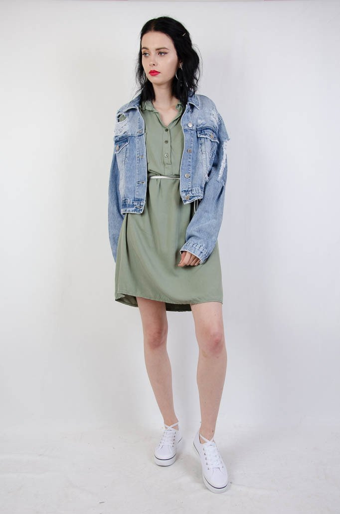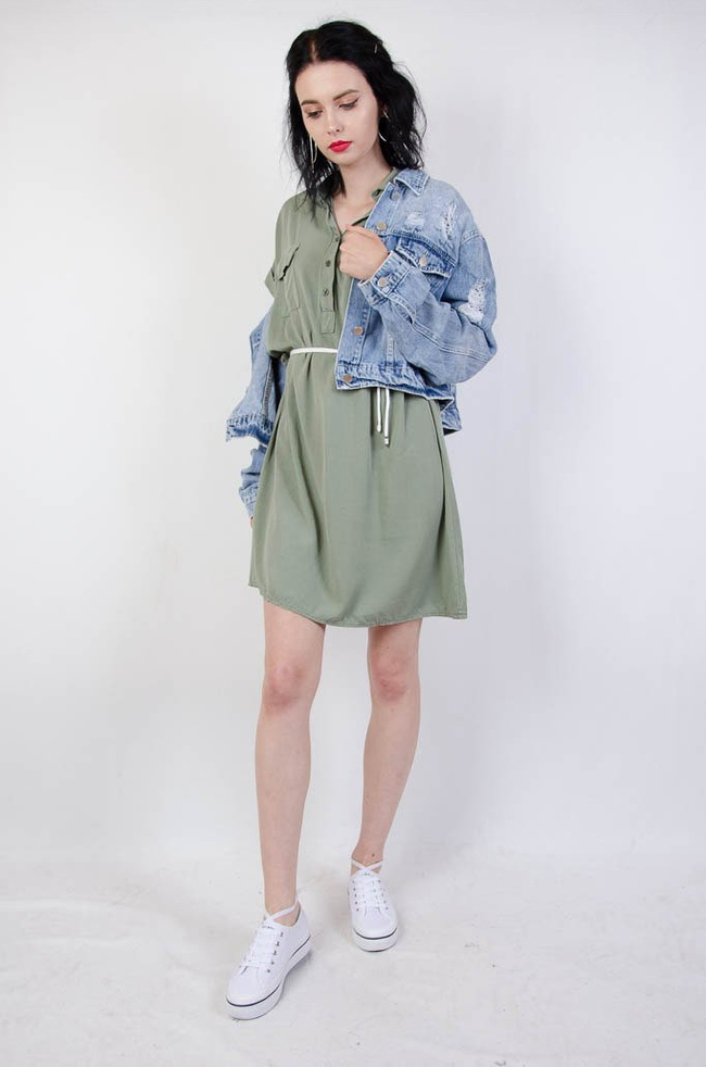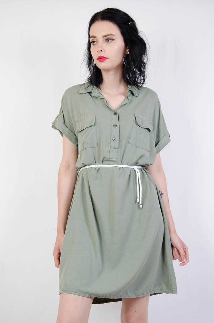 ZIELONA SUKIENKA SZMIZJERKA WIĄZANA W PASIE