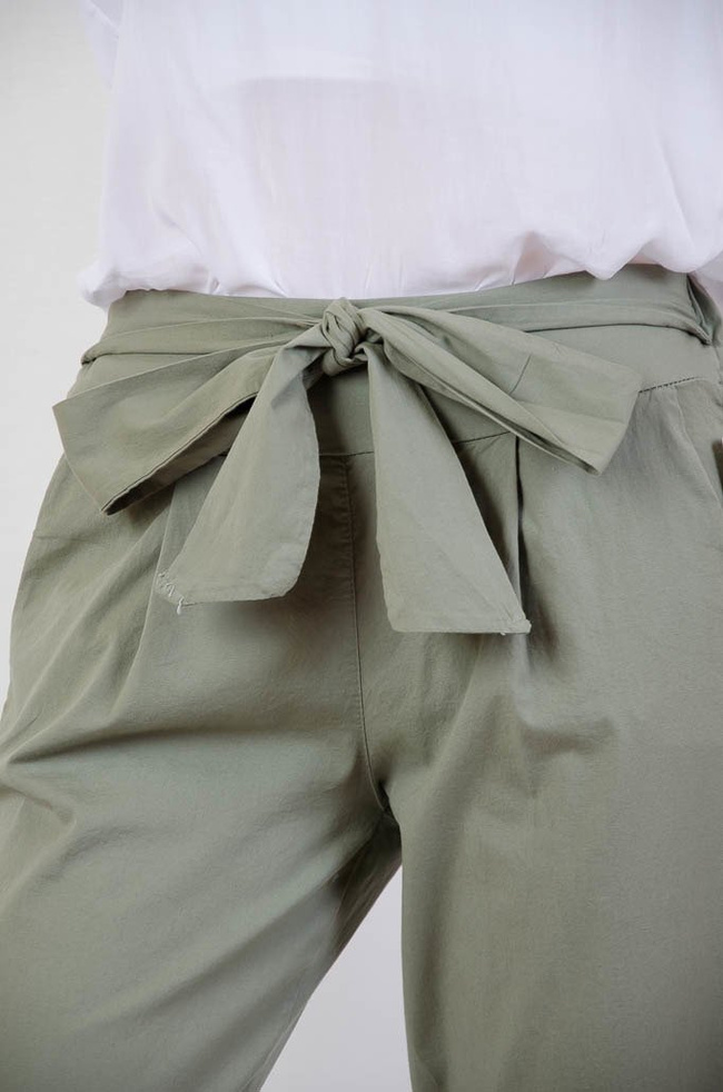 Zielone materiałowe spodnie z wiązaniem w pasie
