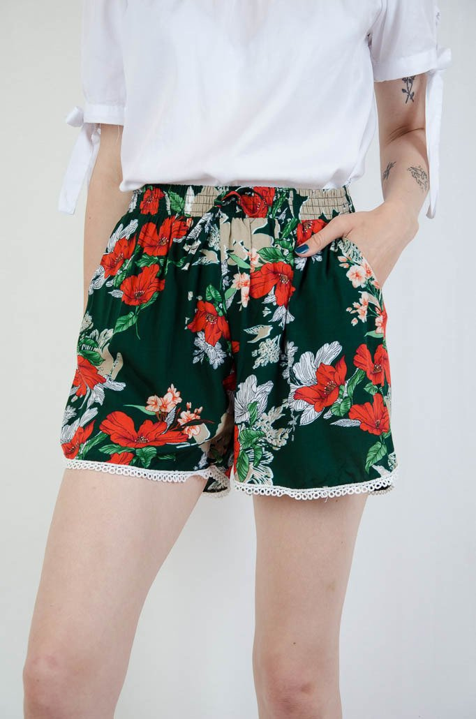 Zielone zwiewne spodenki w kwiaty