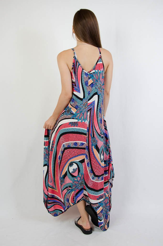 ASYMETRYCZNA SUKIENKA W KOLOROWE WZORY