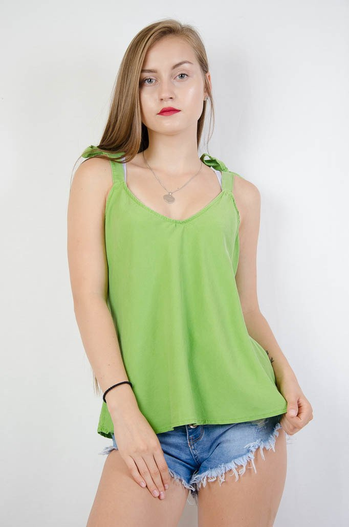 LUŹNY TOP Z KOKARDAMI NA RAMIONACH