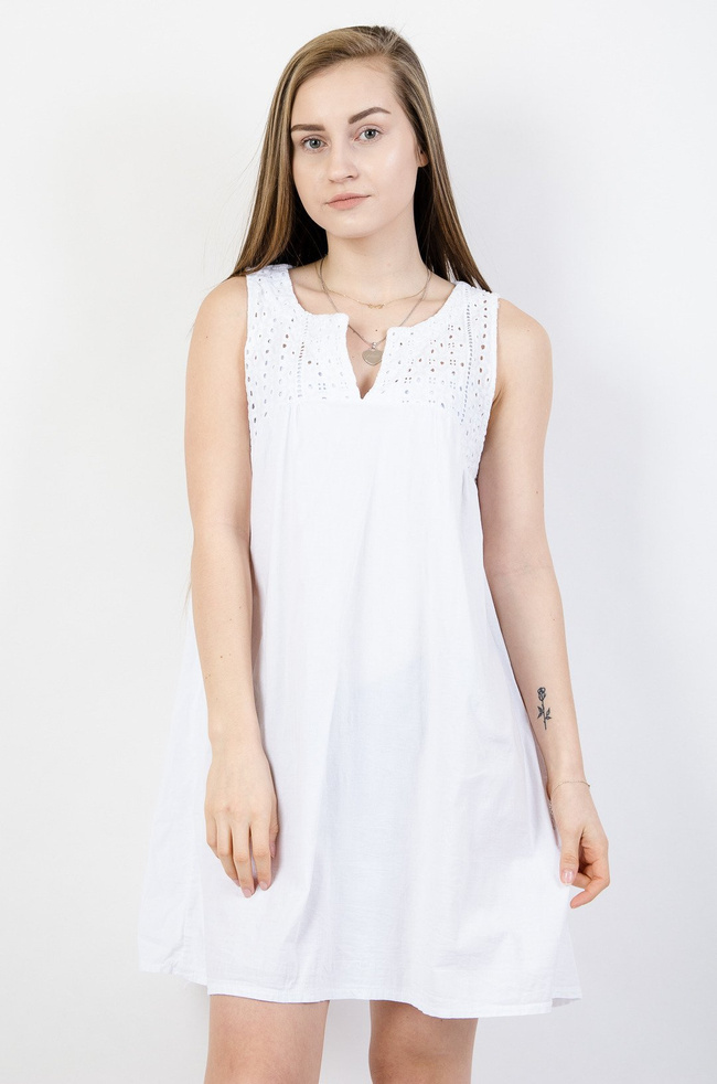 Biała trapezowa sukienka z ażurowymi wstawkami