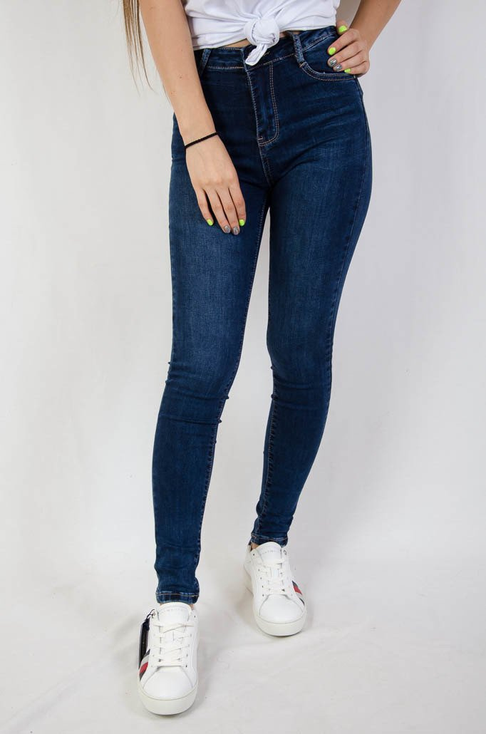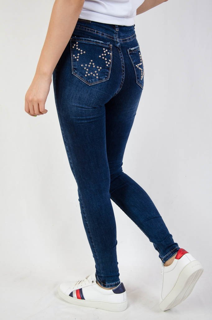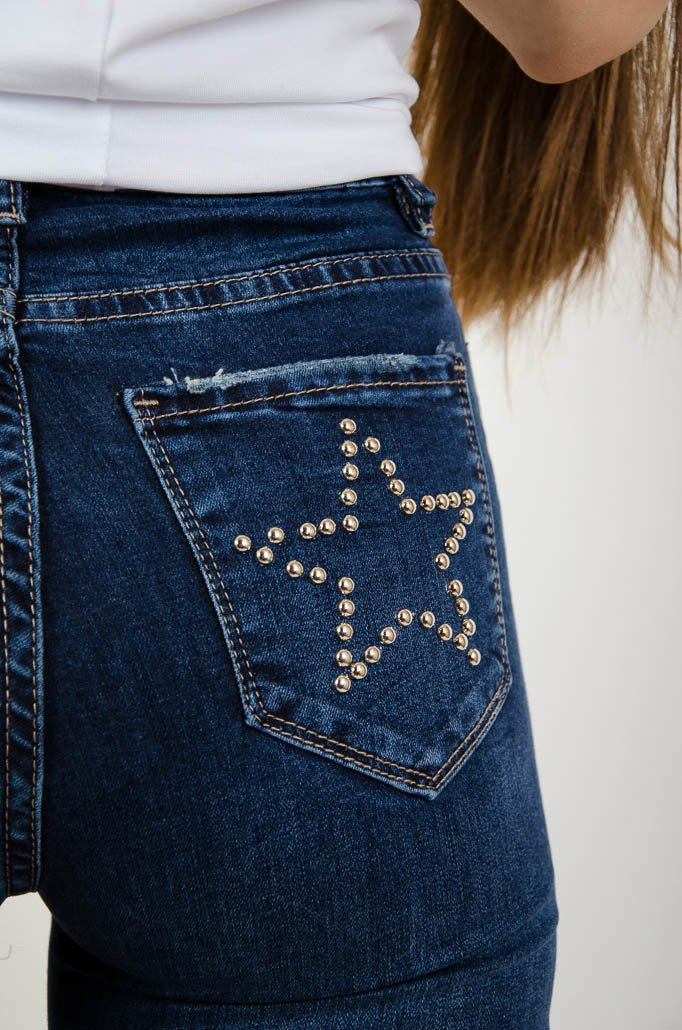 Ciemne spodnie jeansowe z ćwiekami na kieszeniach