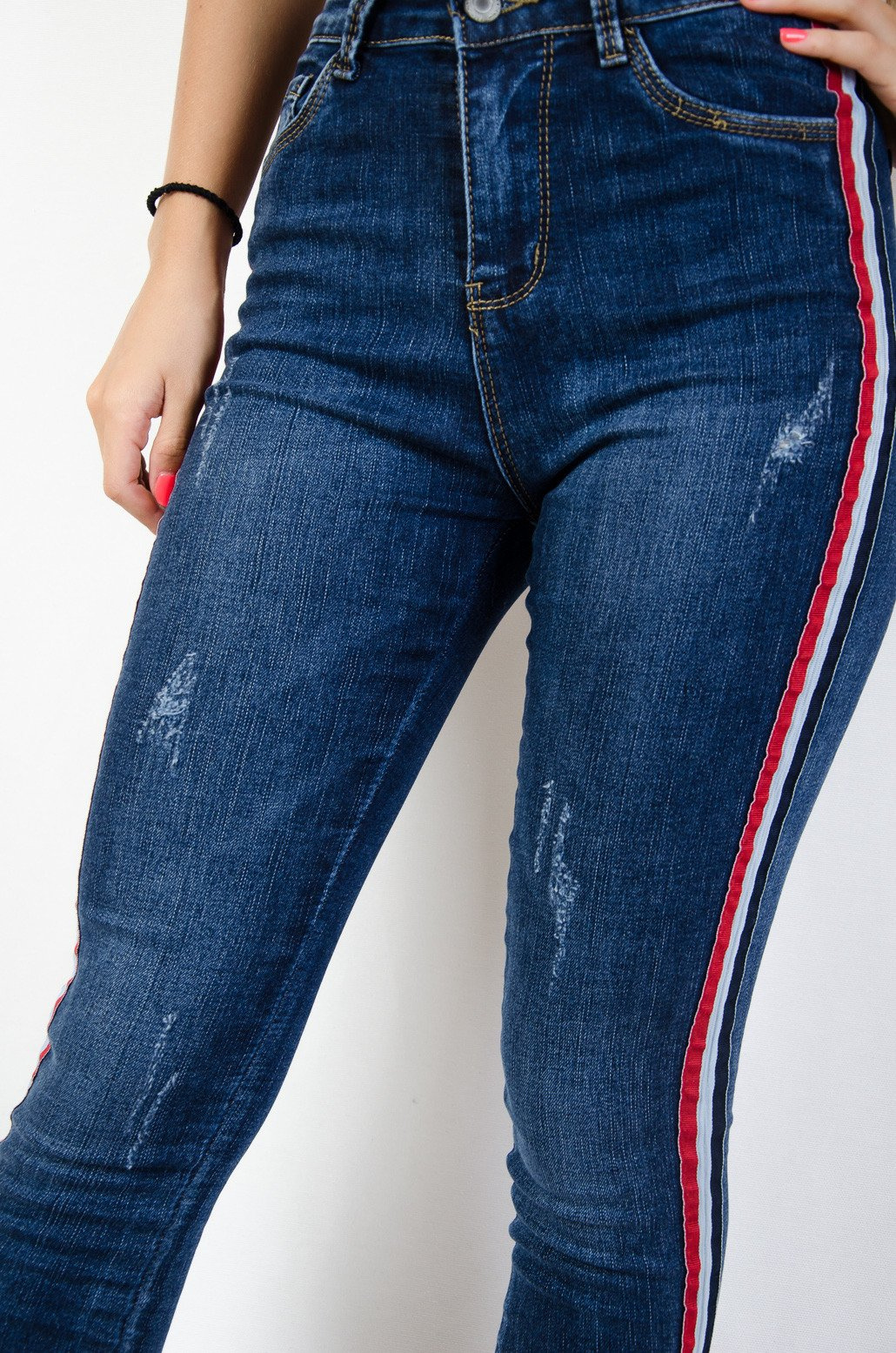 Spodnie jeansowe z lampasami w trzech kolorach:
