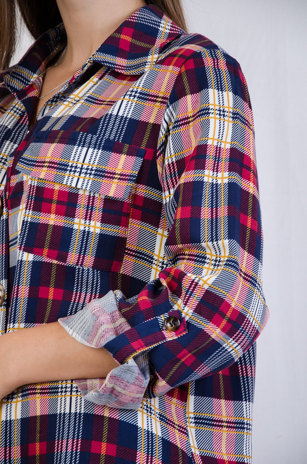 Tunika w kratę zapinana na guziki