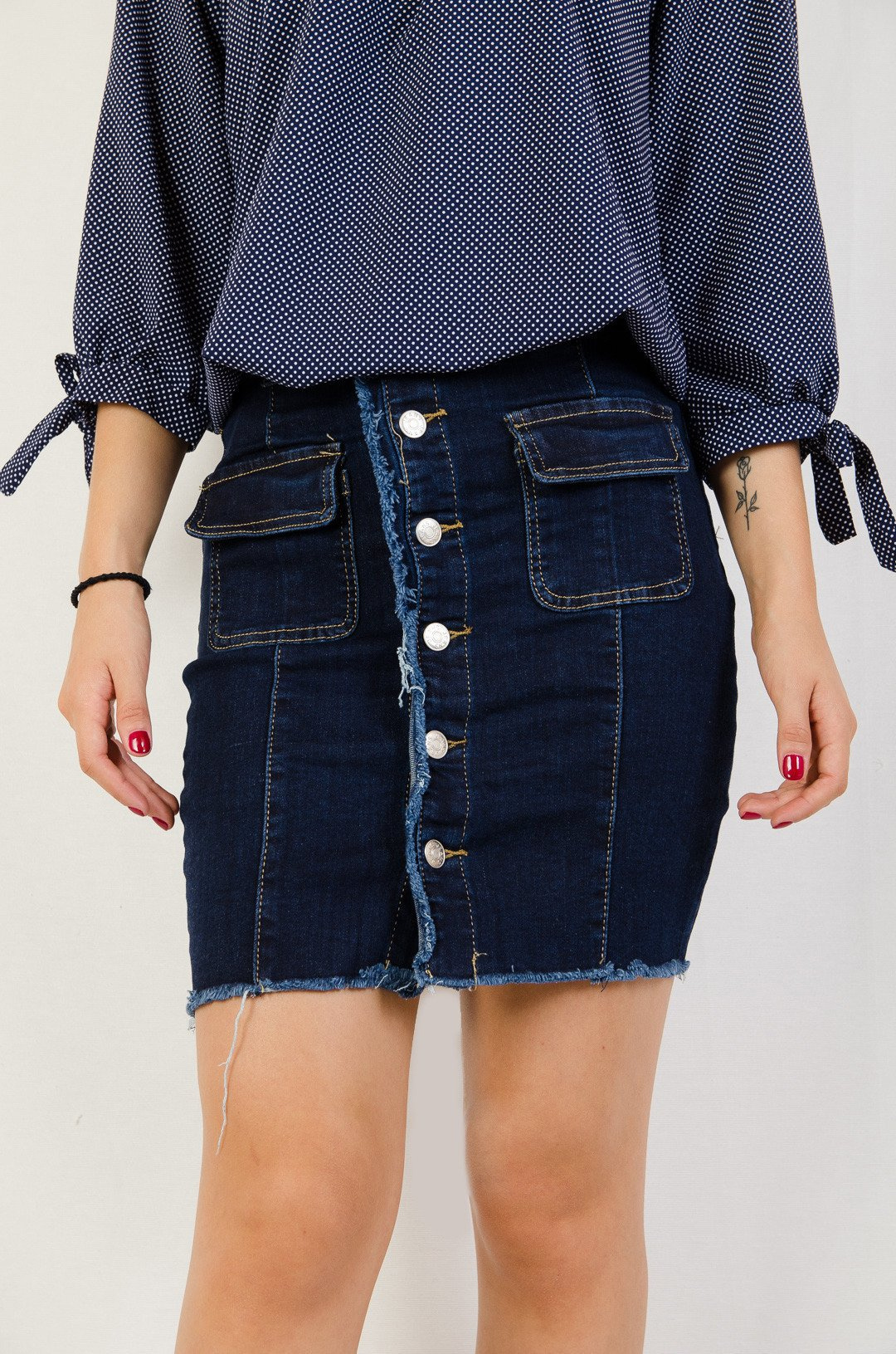 Granatowa spódniczka jeansowa z guzikami