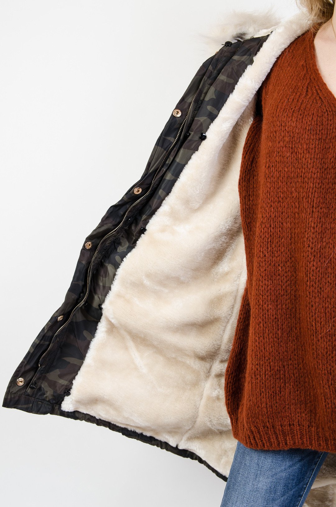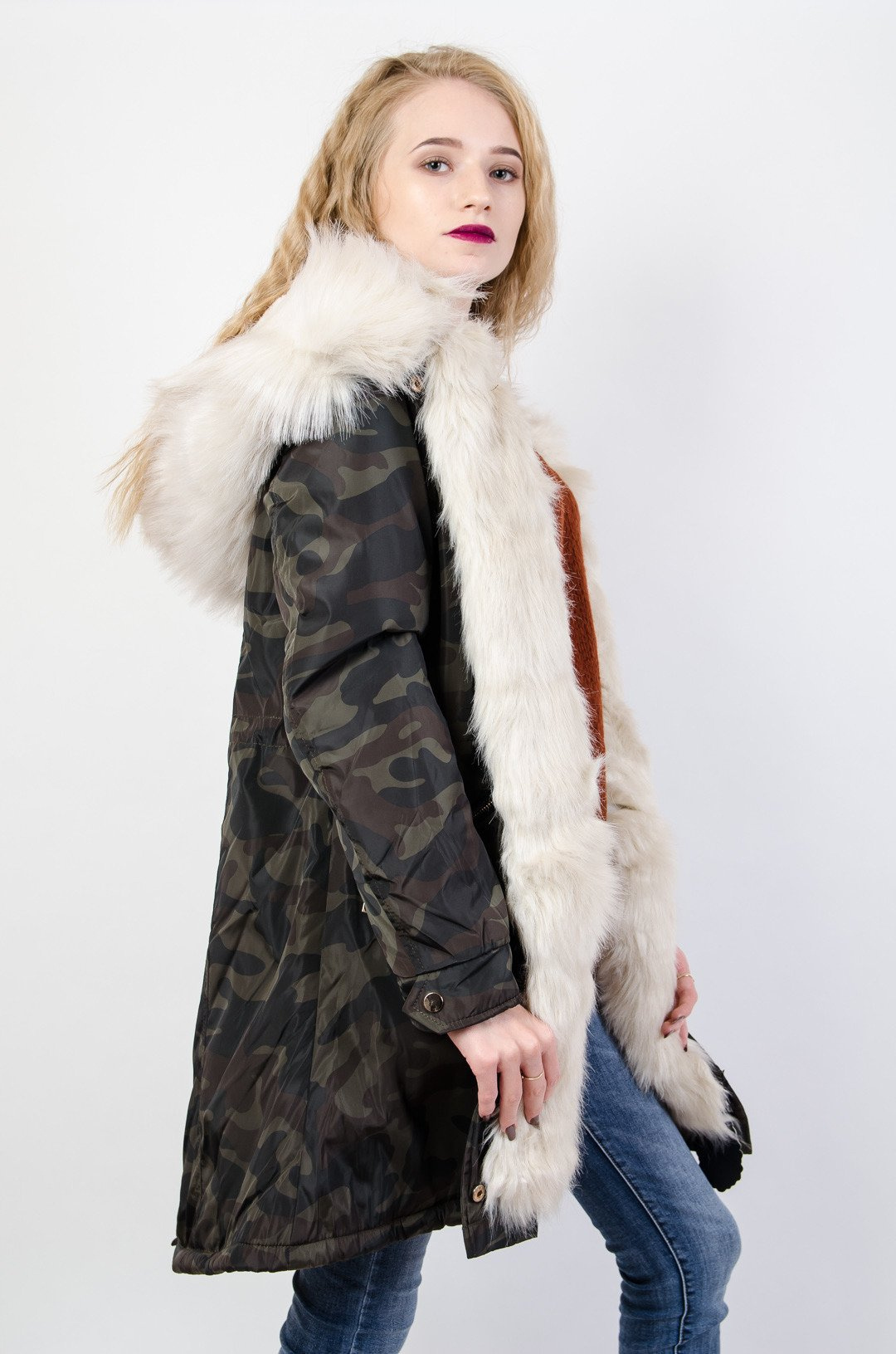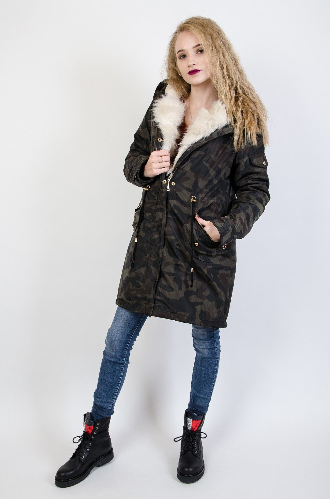 Kurtka moro ocieplana z futerkiem. Futerko przy zamku oraz na kapturze jest odpinane, co widać na zdjęciach.