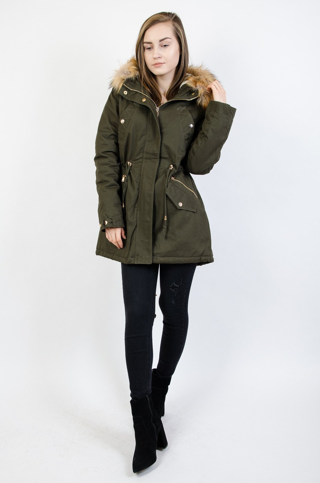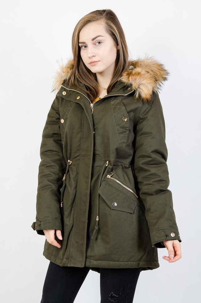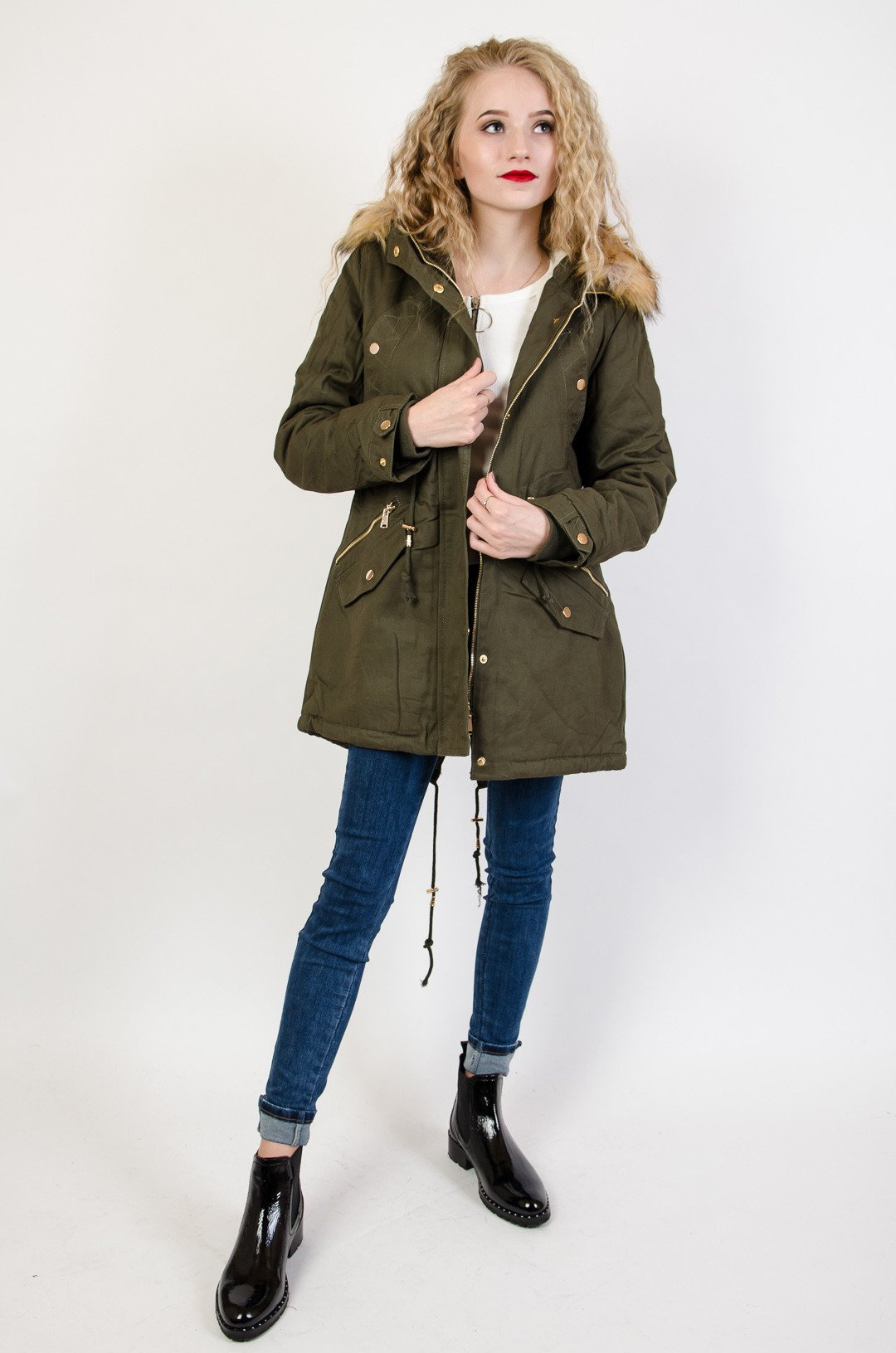 Zielona asymetryczna kurtka ze ściągaczem w pasie
