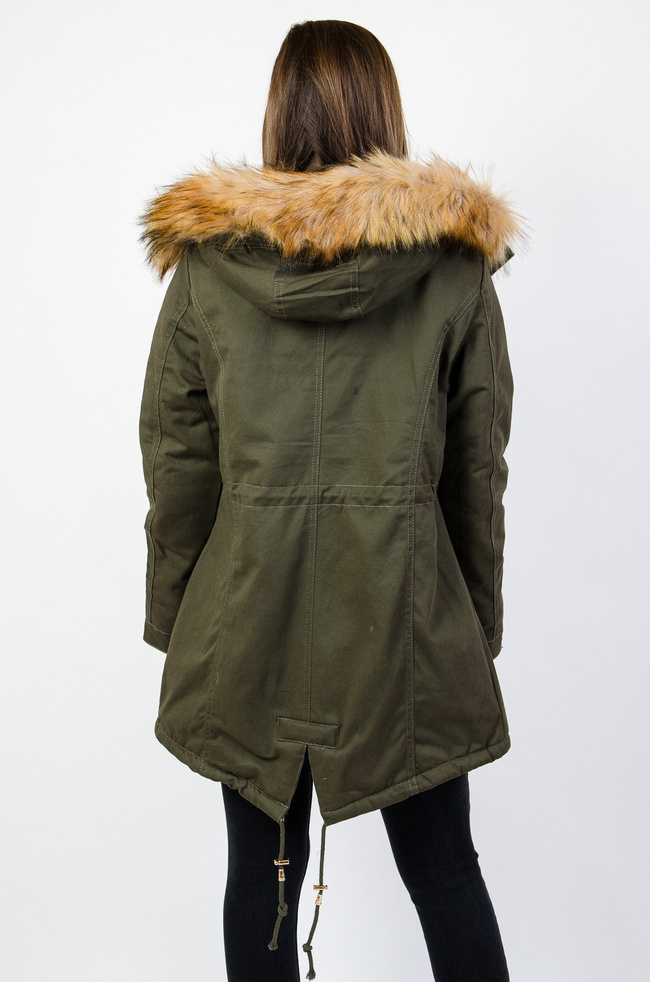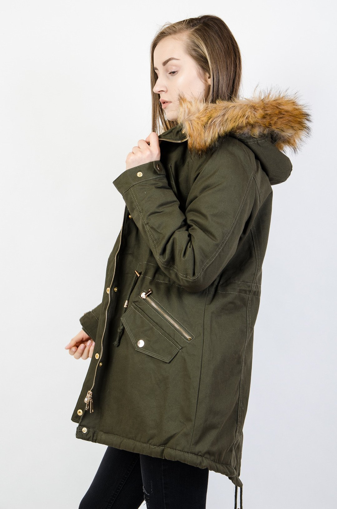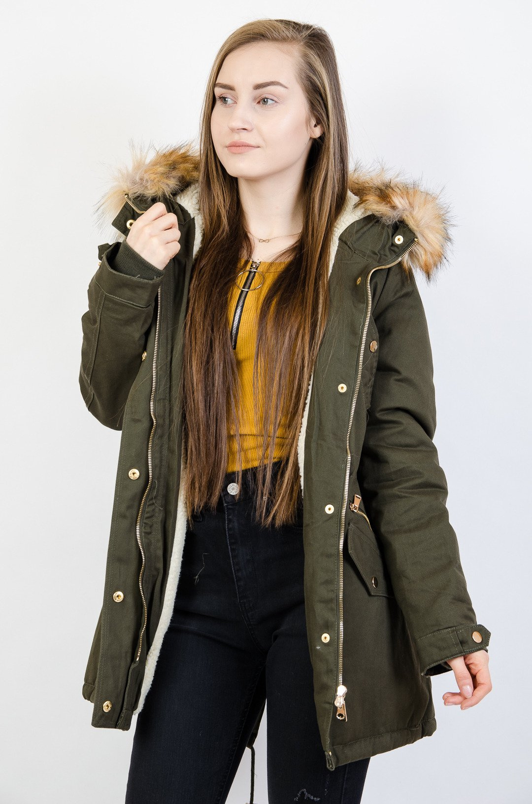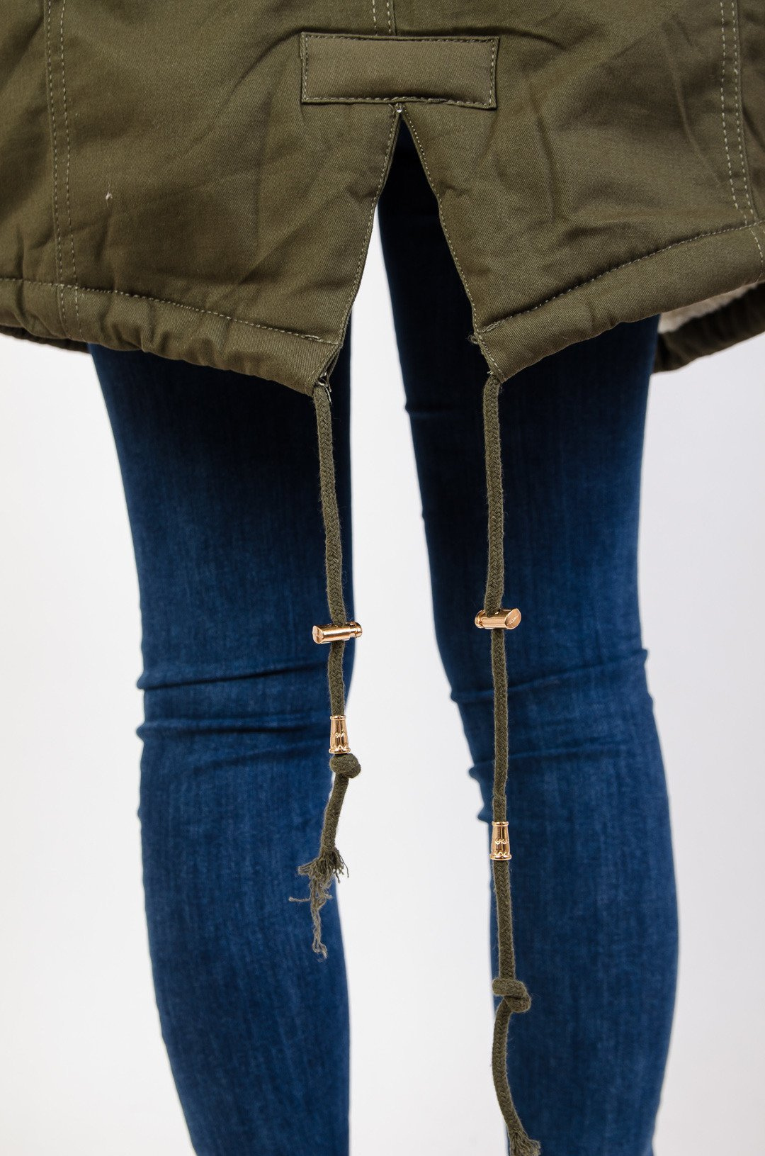 Zielona asymetryczna kurtka ze ściągaczem w pasie