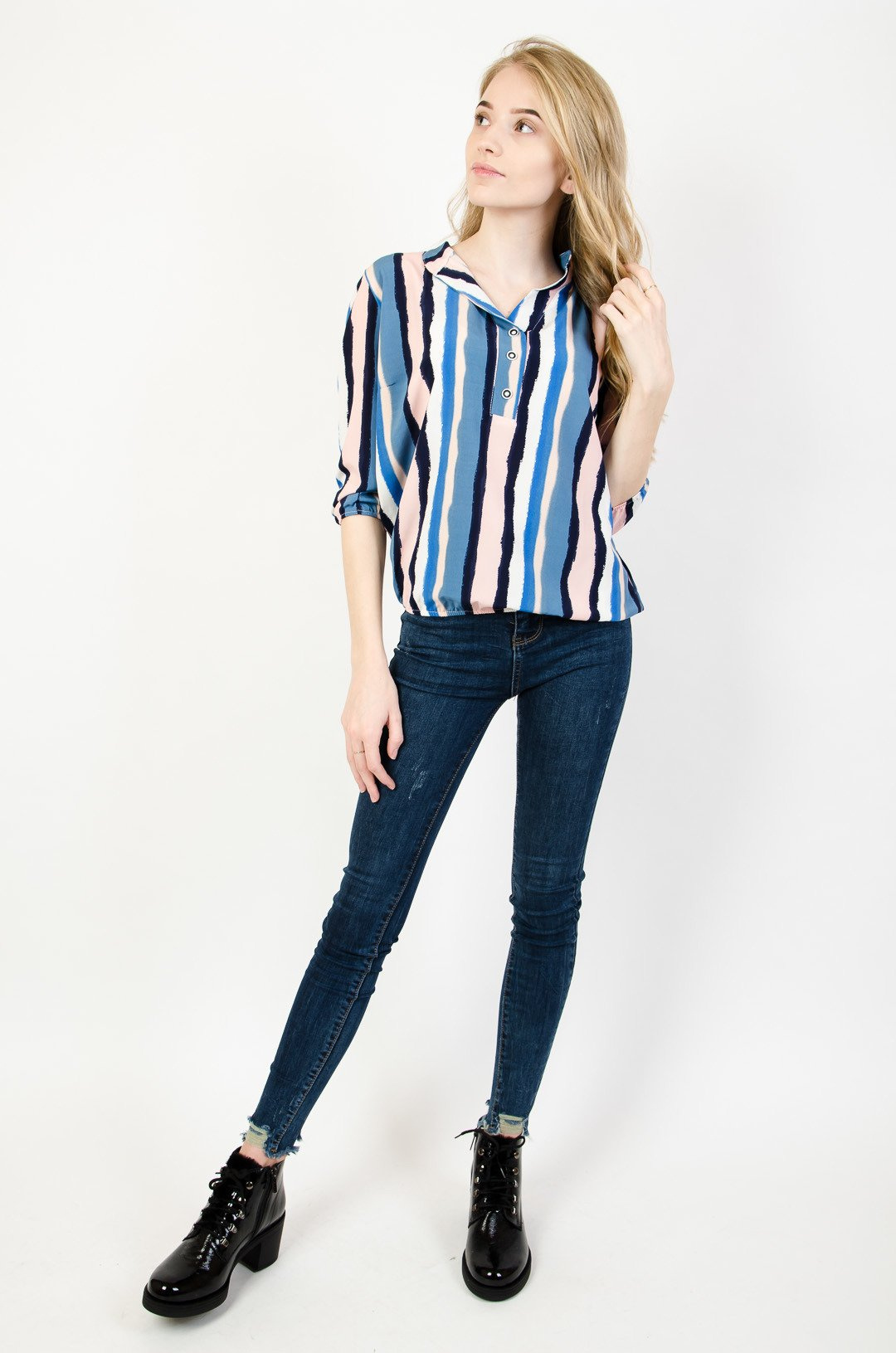 Bluzka w kolorowe paski z rękawem 3/4