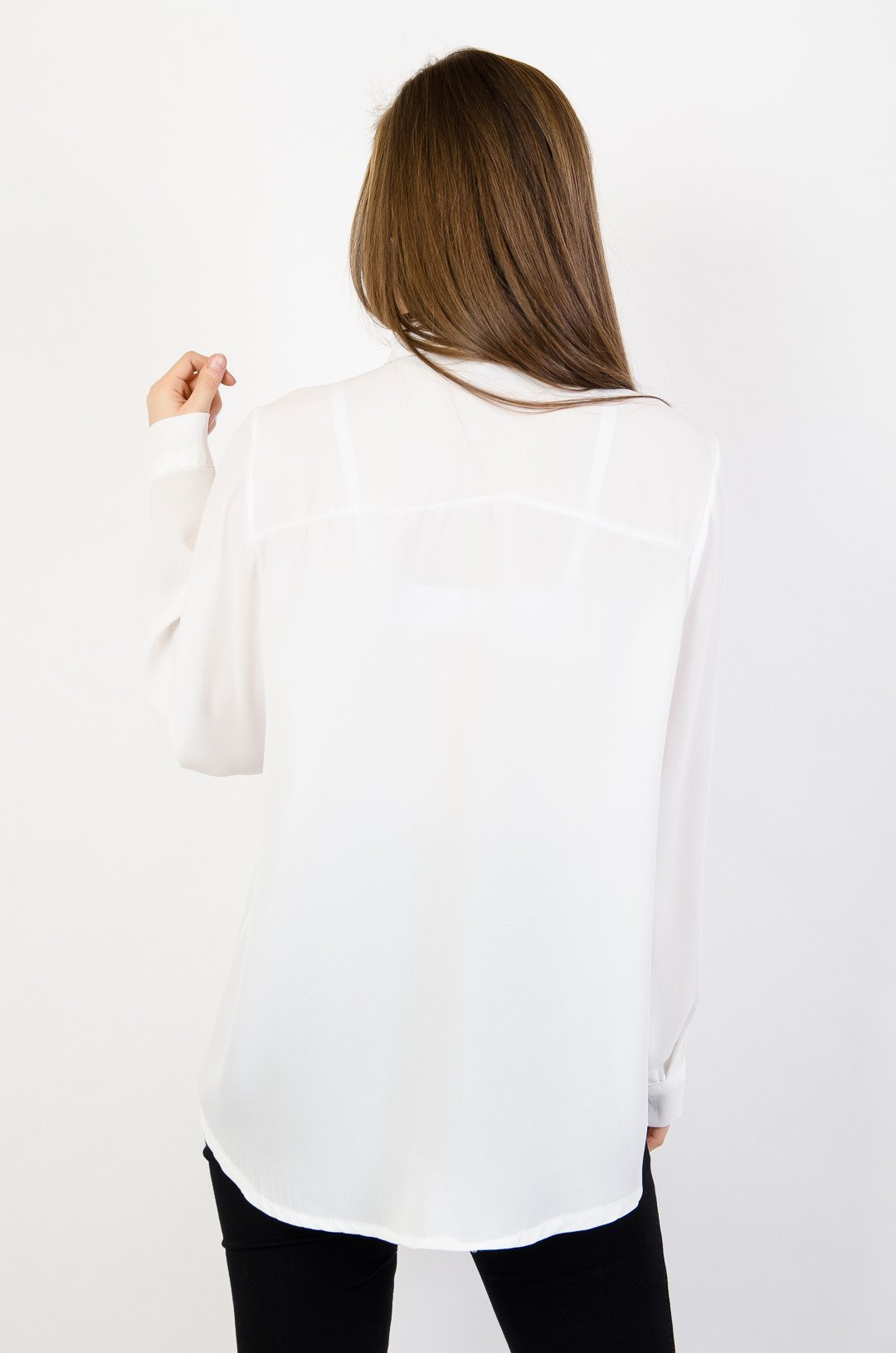 Biała koszula z kokardą pod szyją
