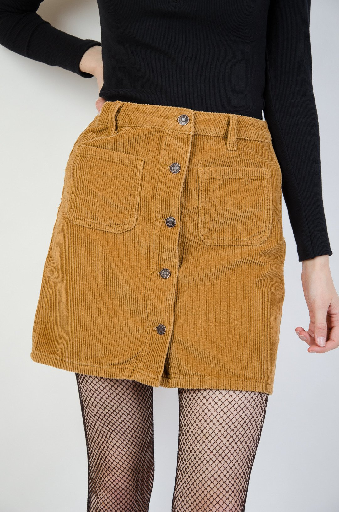 Sztruksowa spódnica z guzikami w kolorze karmelowym.