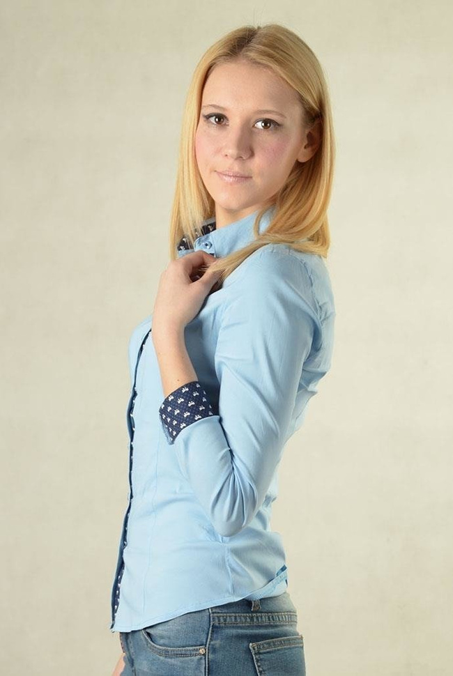 Elegancka koszula, zapinana na guziczki. Mankiety w kokardki.