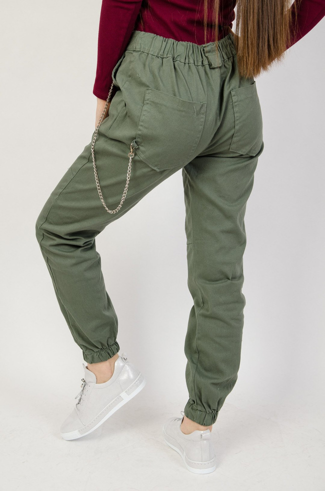 Zielone spodnie joggery z łańcuszkiem