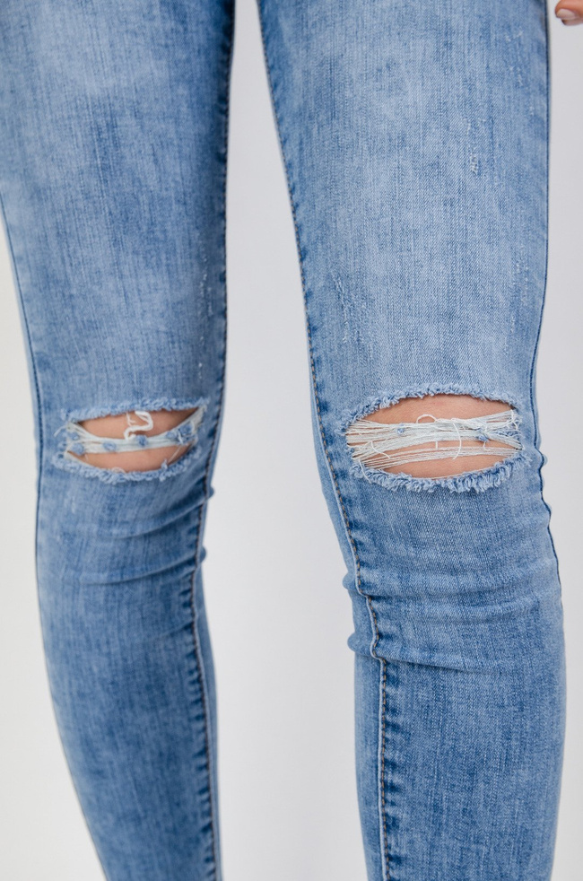 Jasne spodnie jeansowe z rozcięciami na kolanach typu Push-Up.