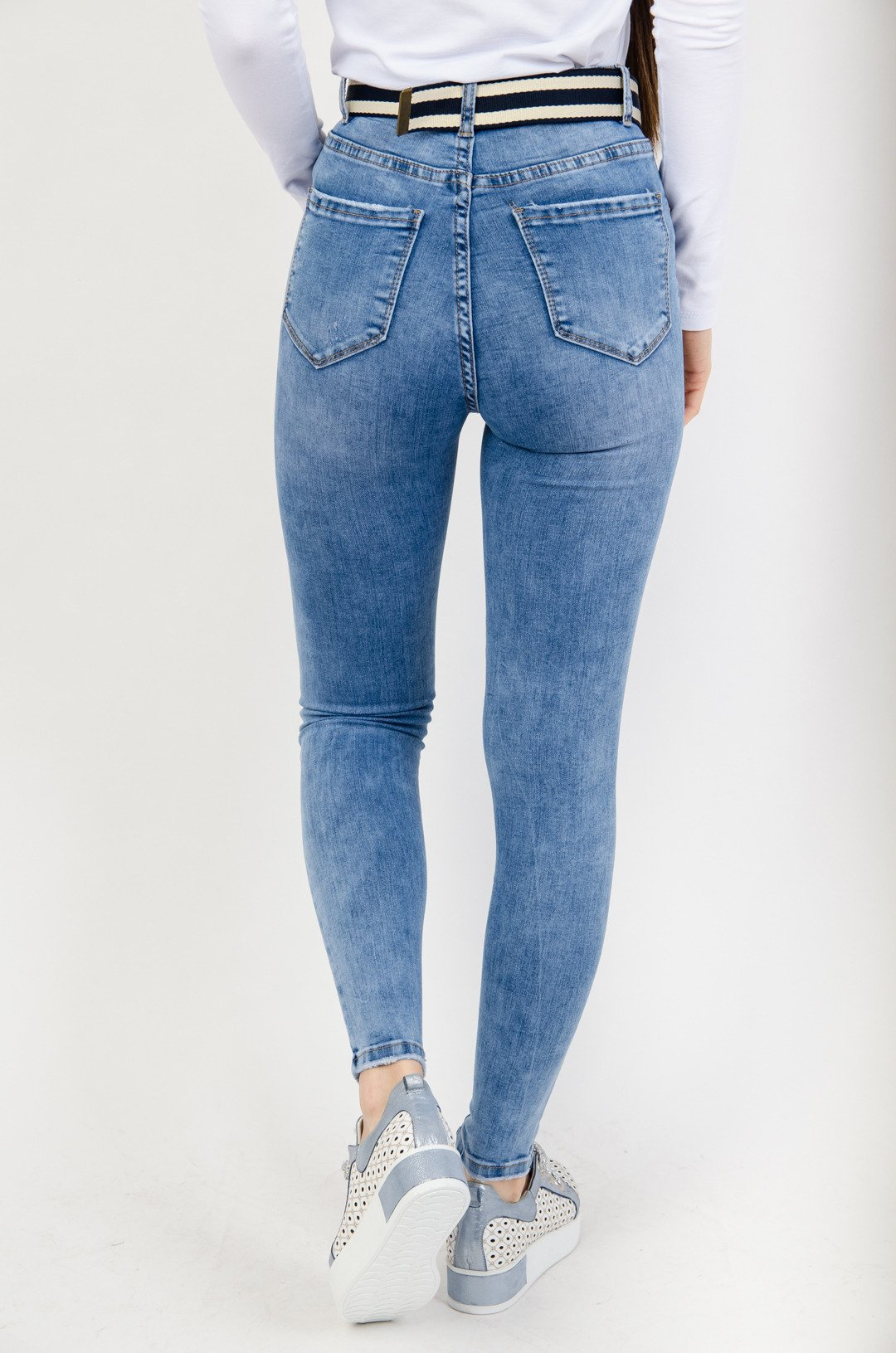 Jasne przejaśniane spodnie jeansowe z wysokim stanem