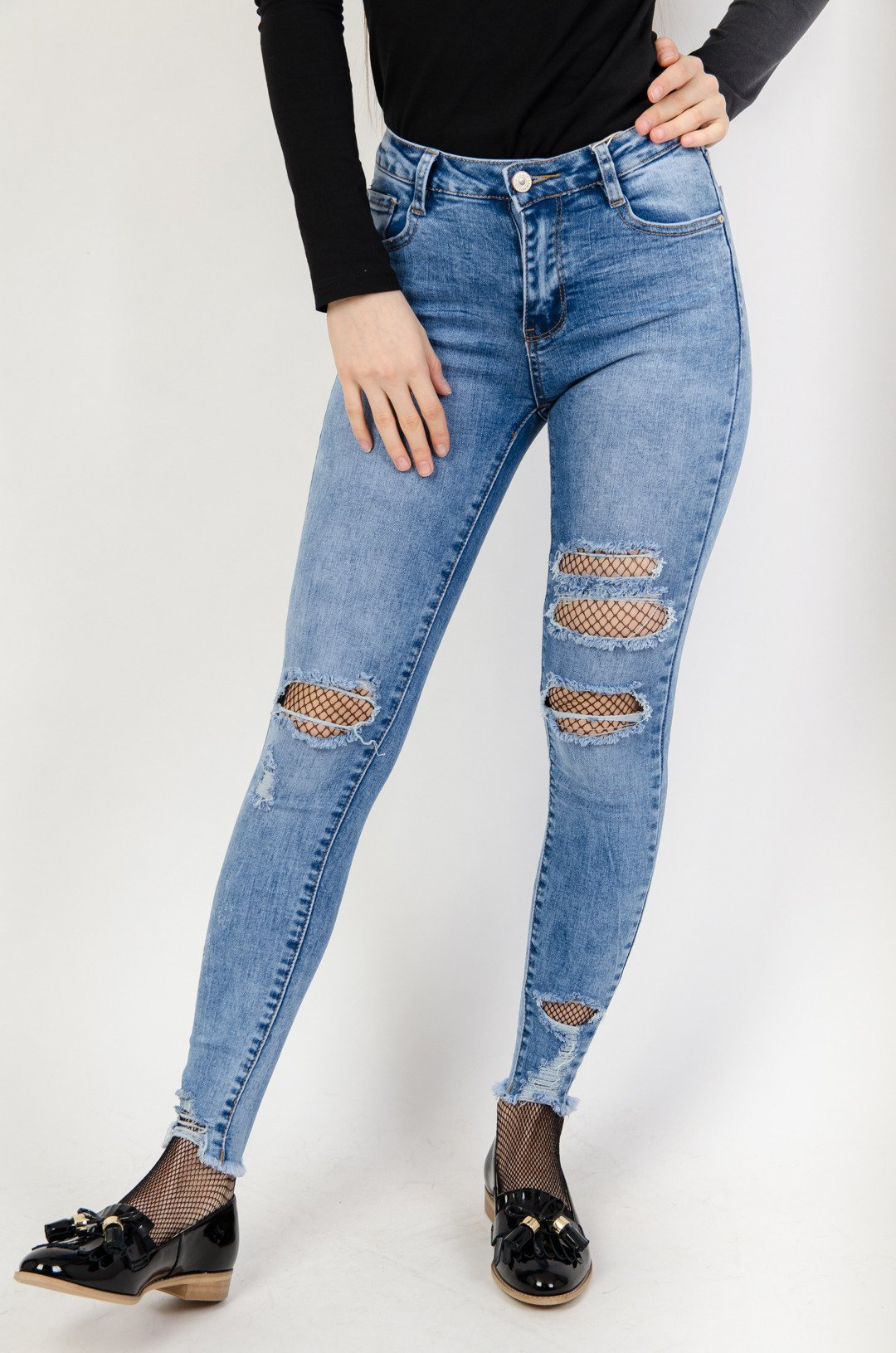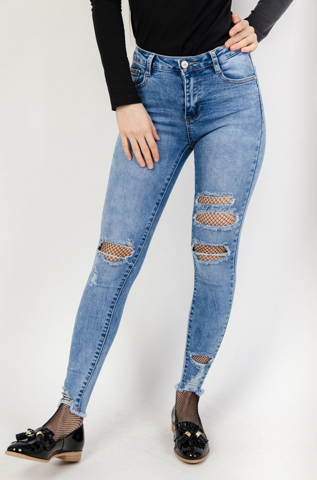 Jasne spodnie jeansowe z dziurami