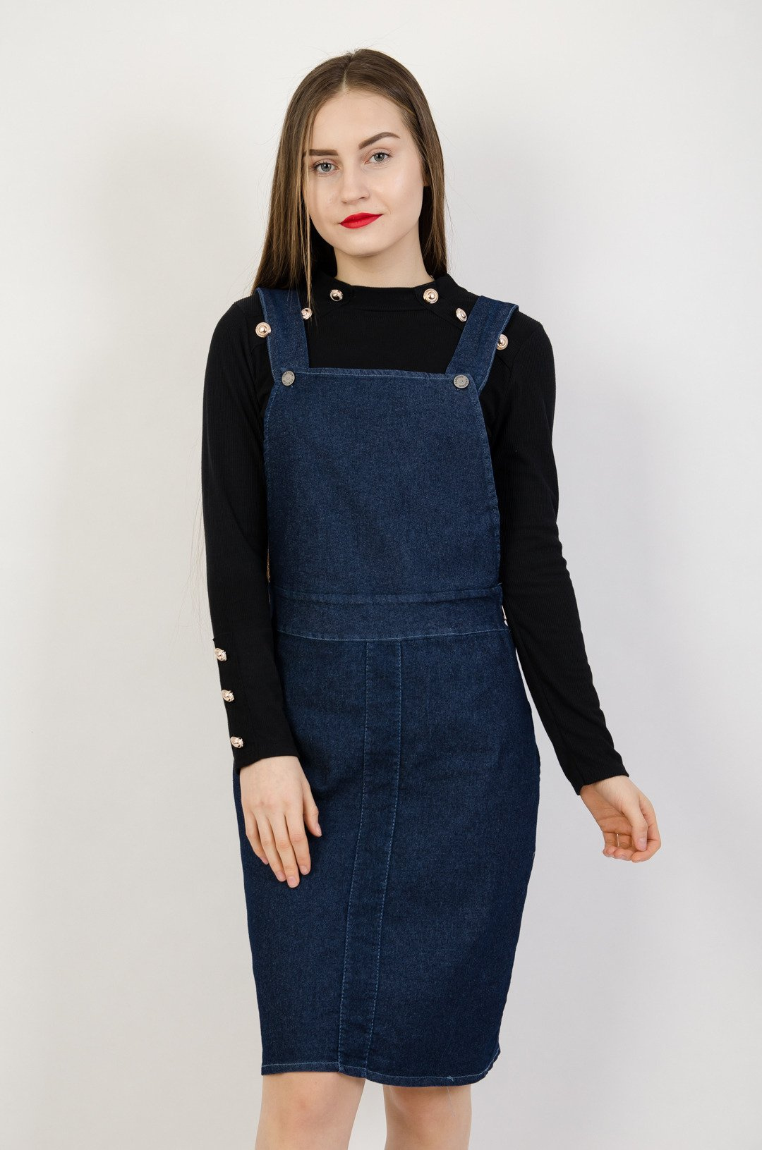 Granatowa sukienka ogrodniczka - Midi