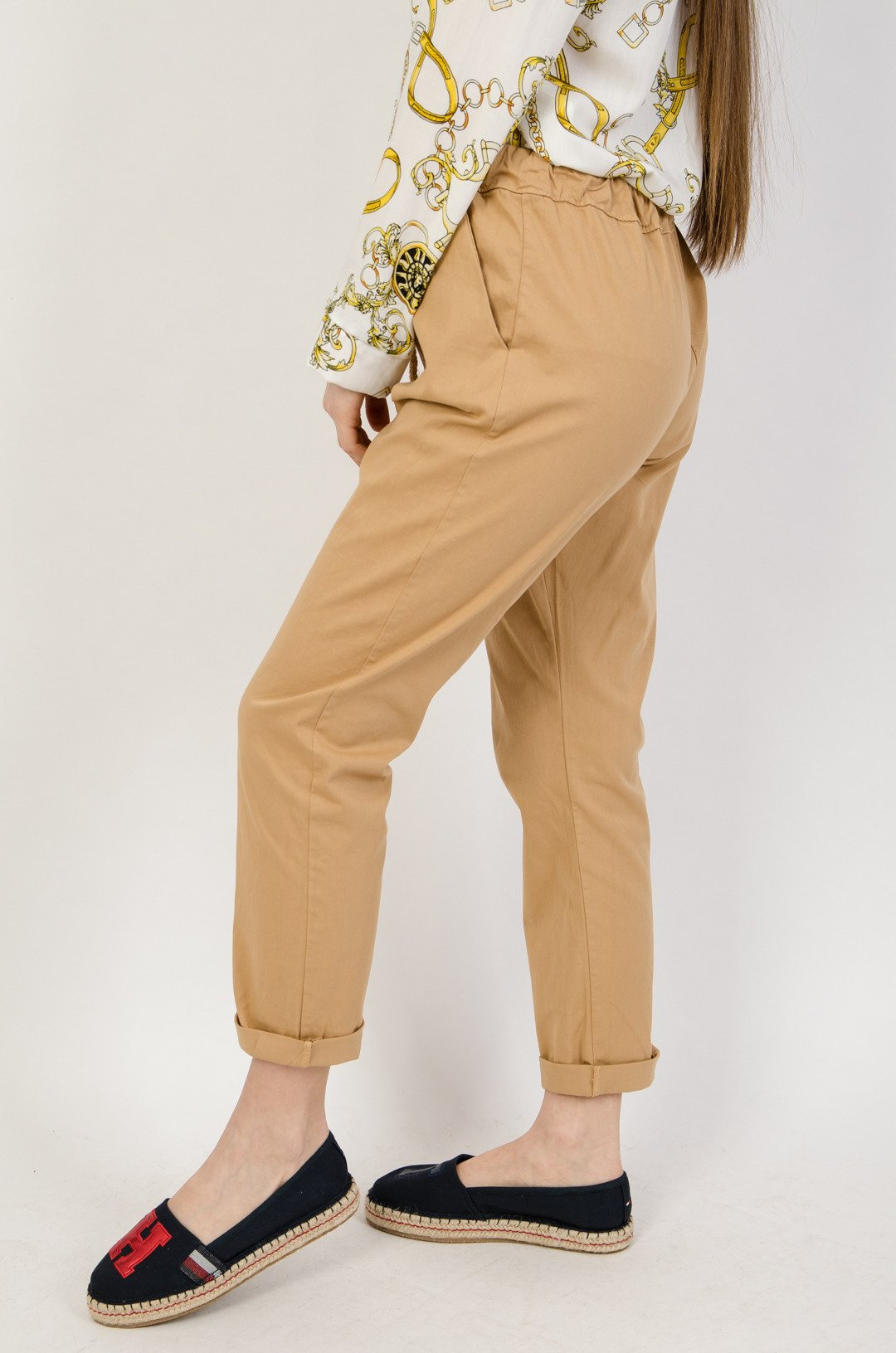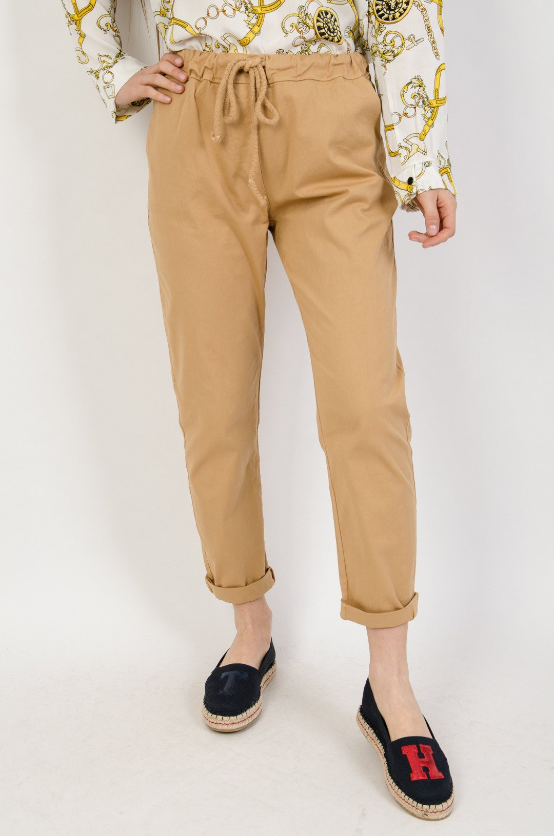 Brązowe materiałowe spodnie wiązane w pasie