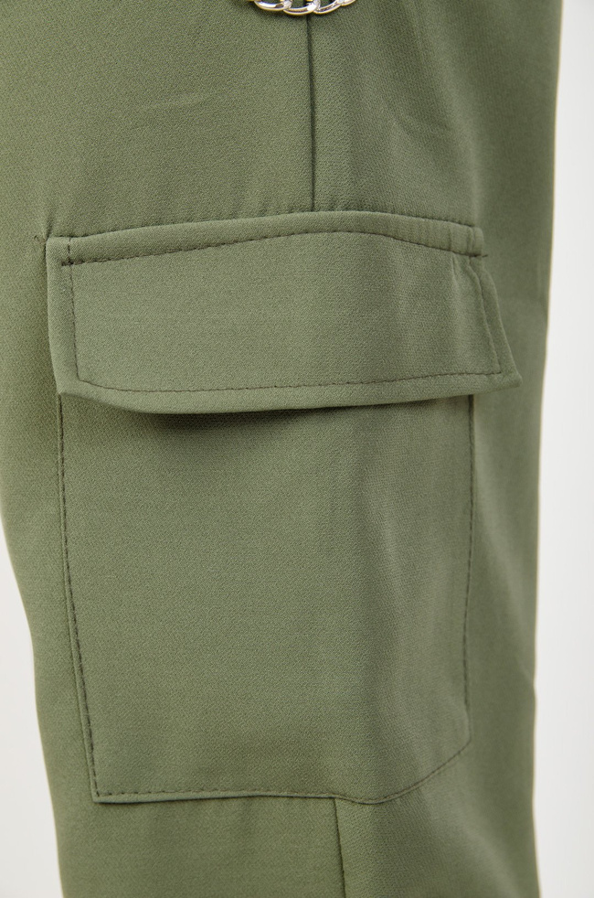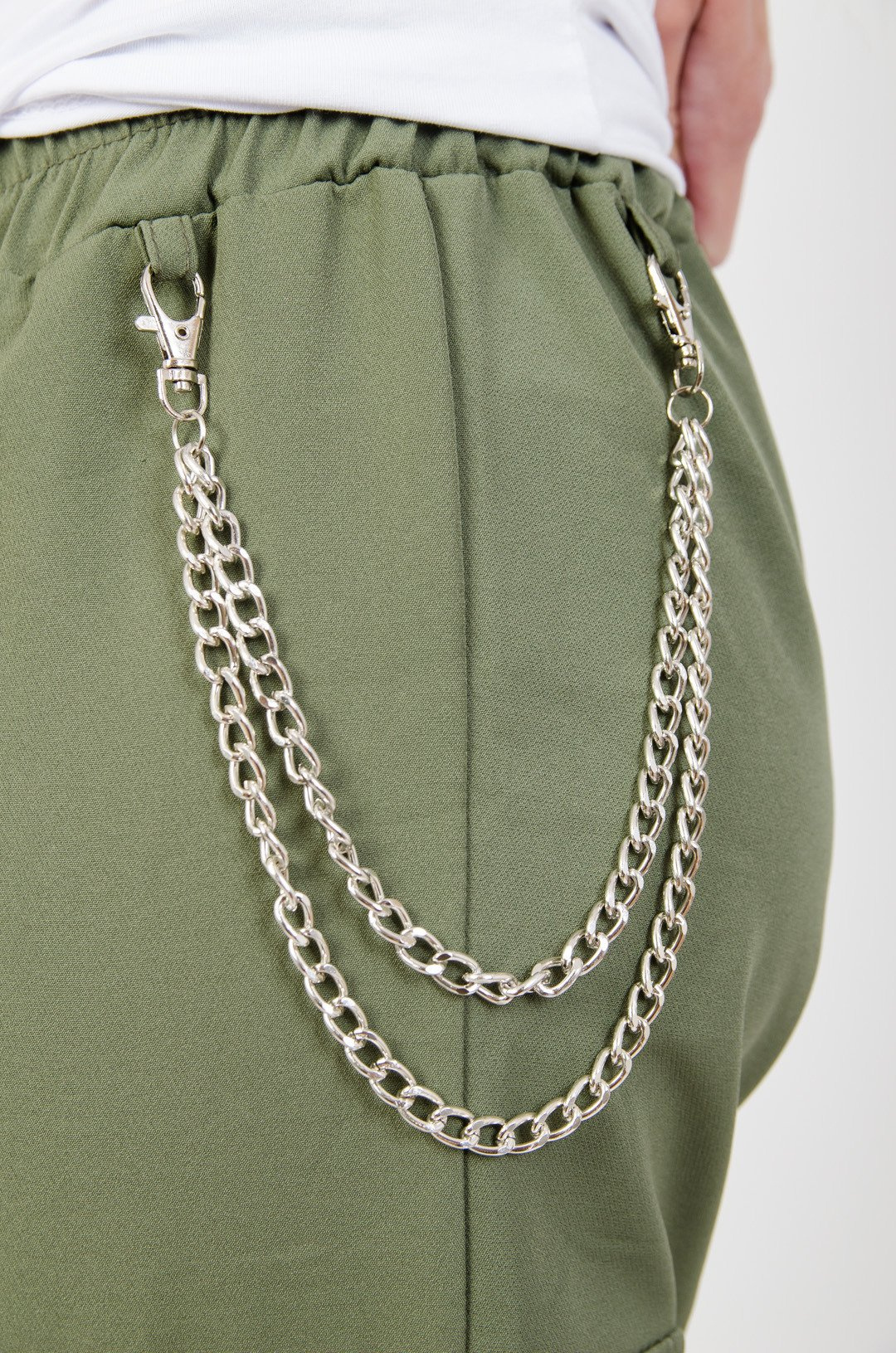 Zielone joggery z łańcuchem i kieszeniami po bokach