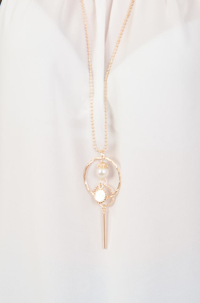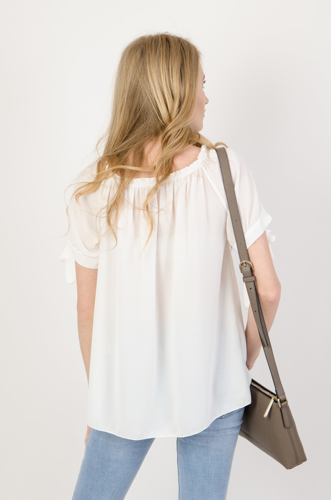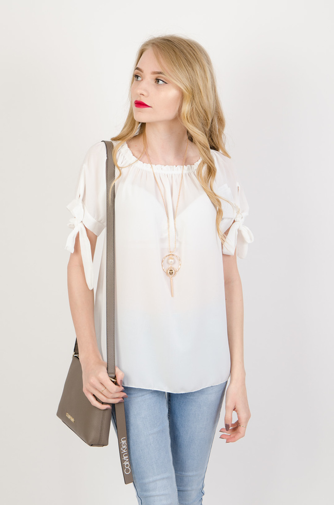 Biała bluzka z wiązaniem przy rękawach + wisiorek