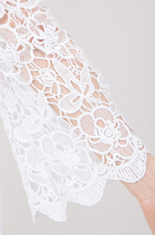 Biała Bluzka Hiszpanka z Ażurowymi Wstawkami, rozszerzane rękawy