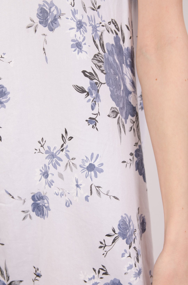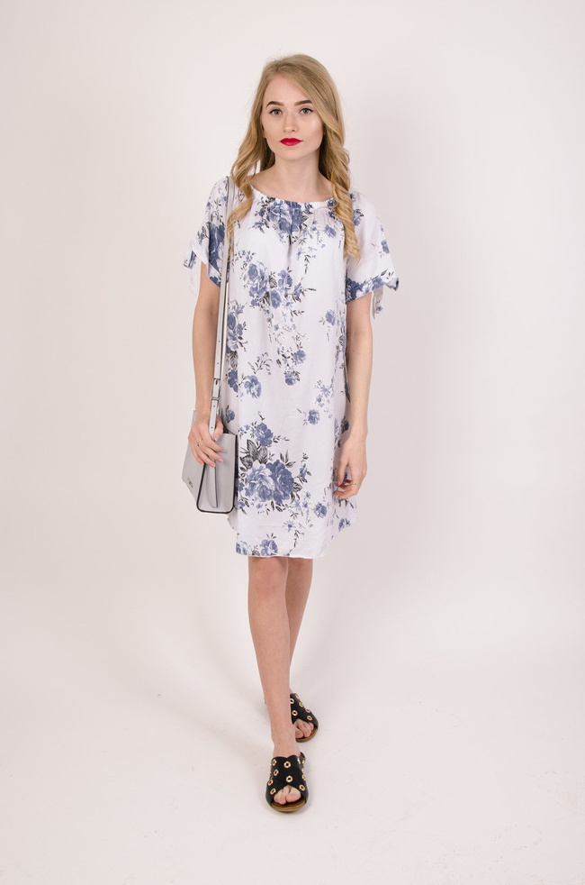 Biała tunika w niebieskie kwiaty z wiązanymi rękawami