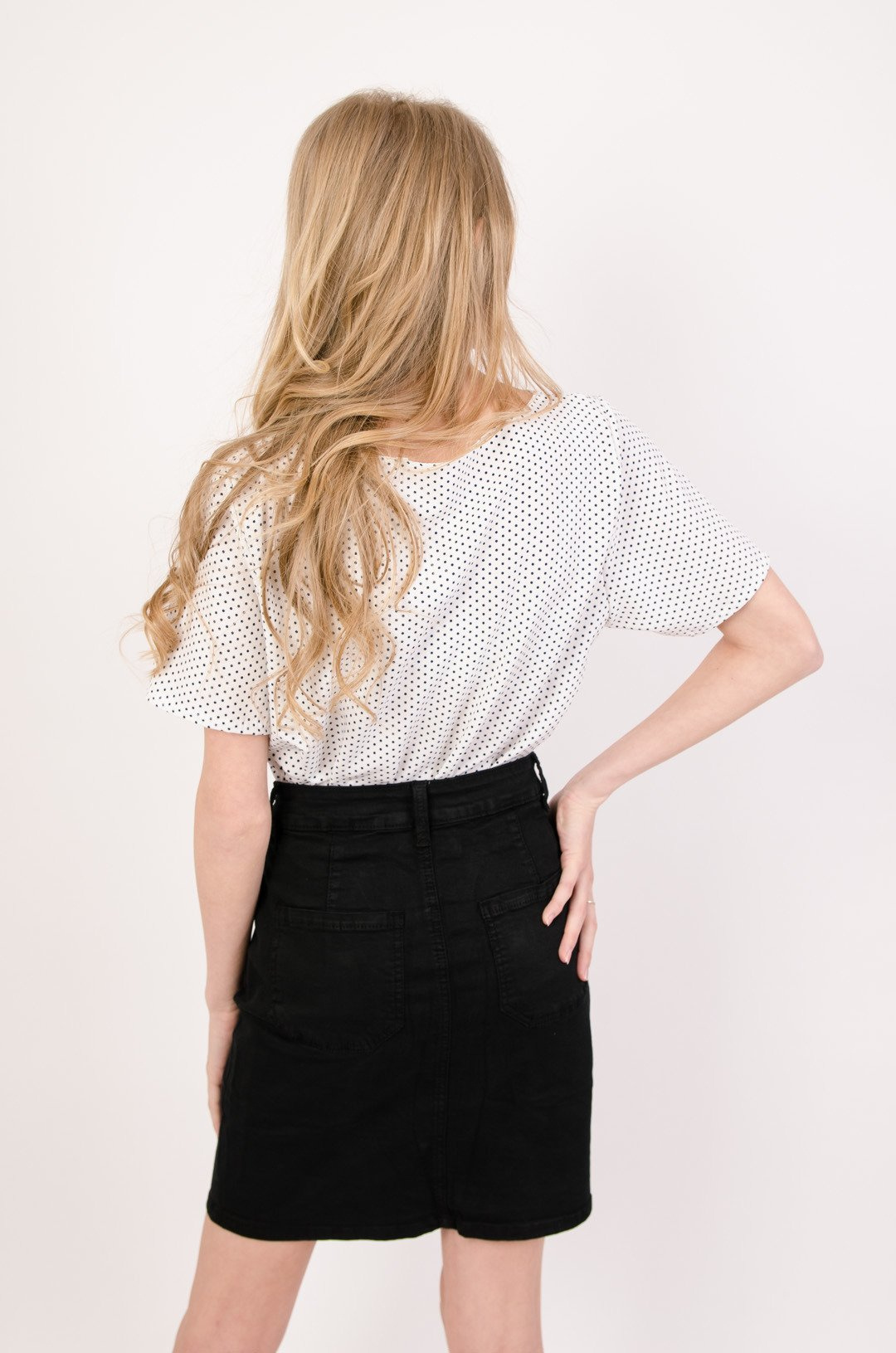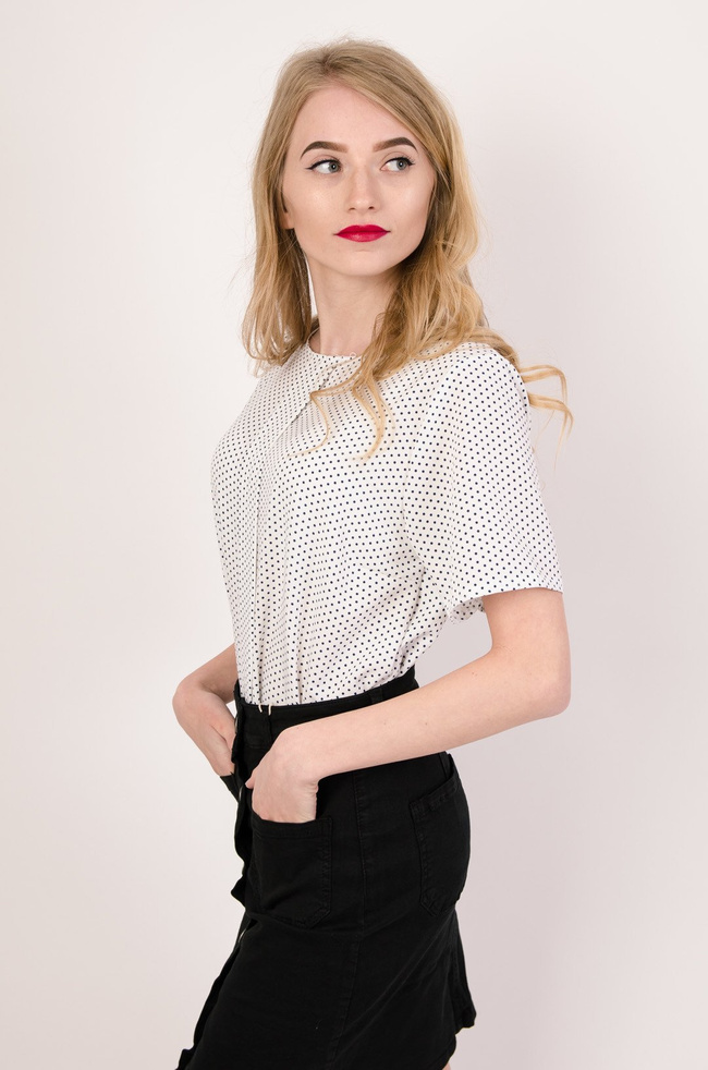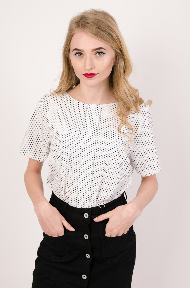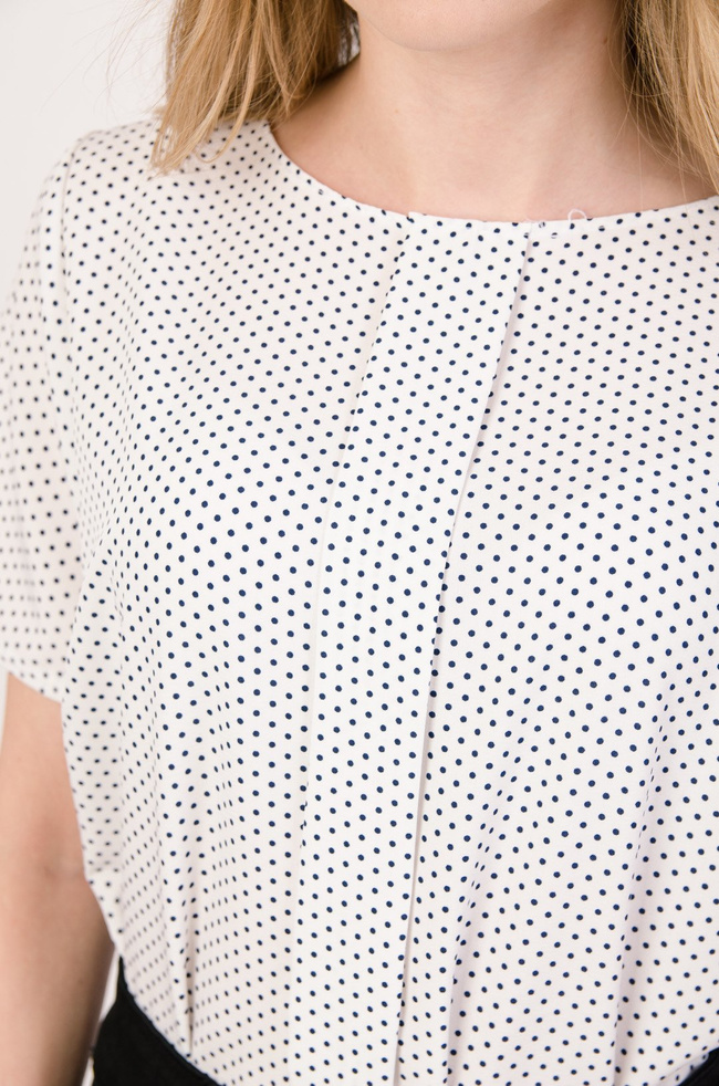 Biała bluzka w drobne kropki z zakładką na środku