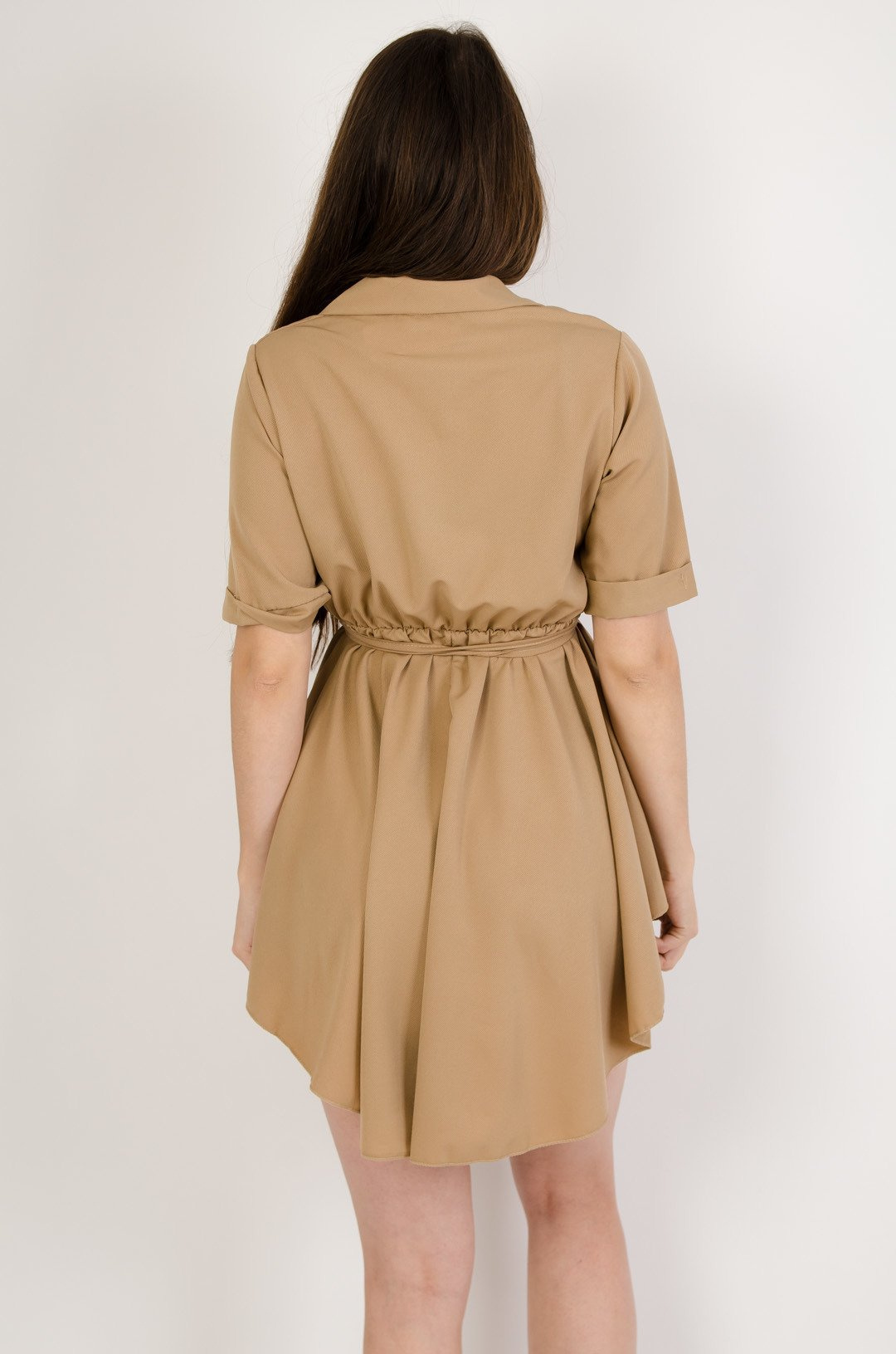 Brązowa zwiewna sukienka szmizjerka z gumką w pasie