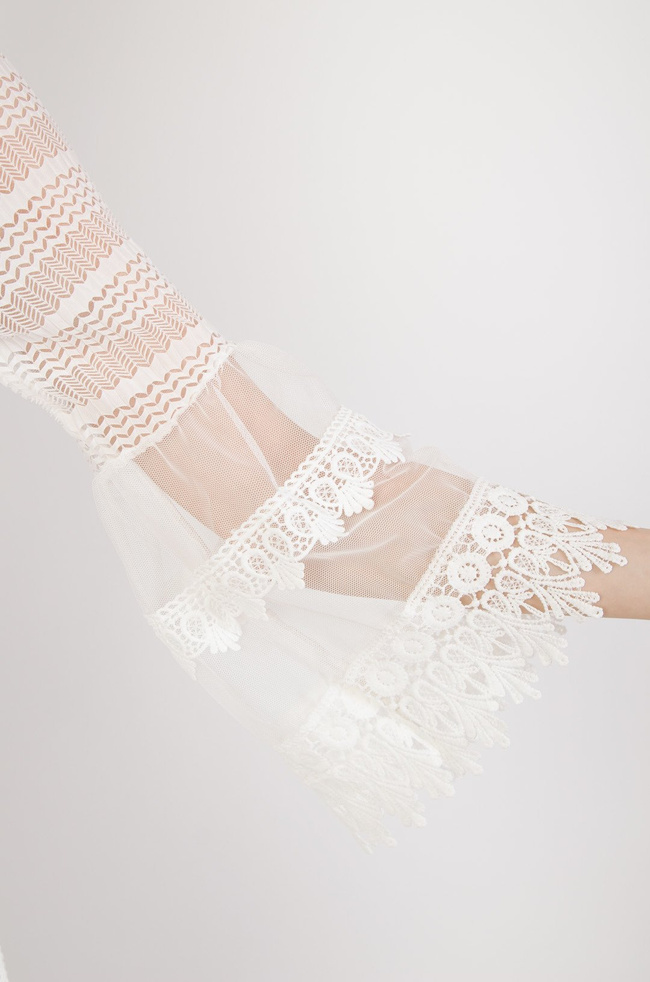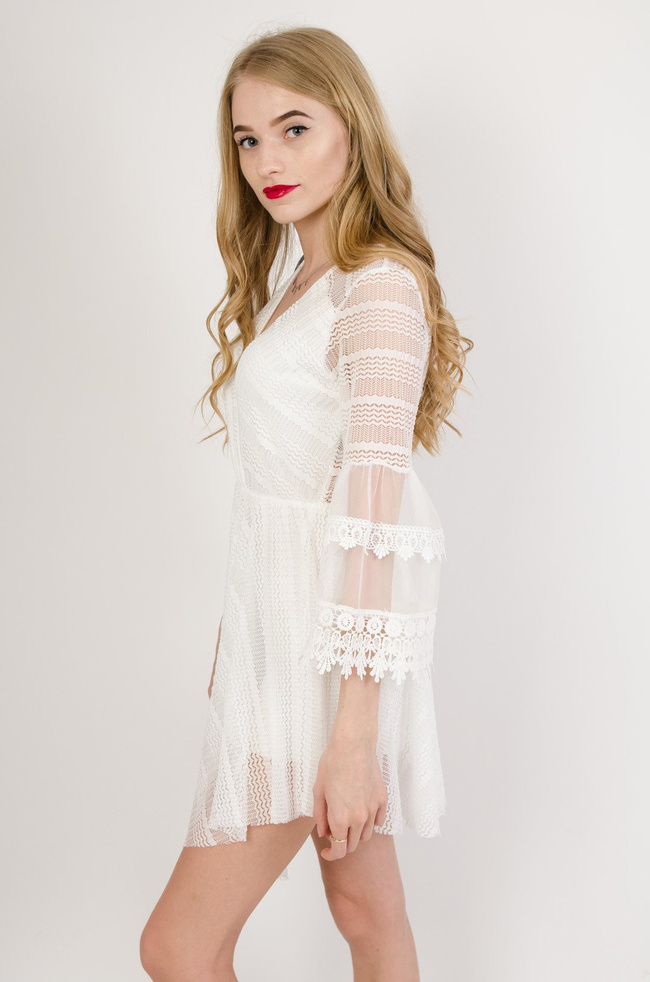 Biała ażurowa sukienka z asymetrycznym dołem oraz dekoltem w serek