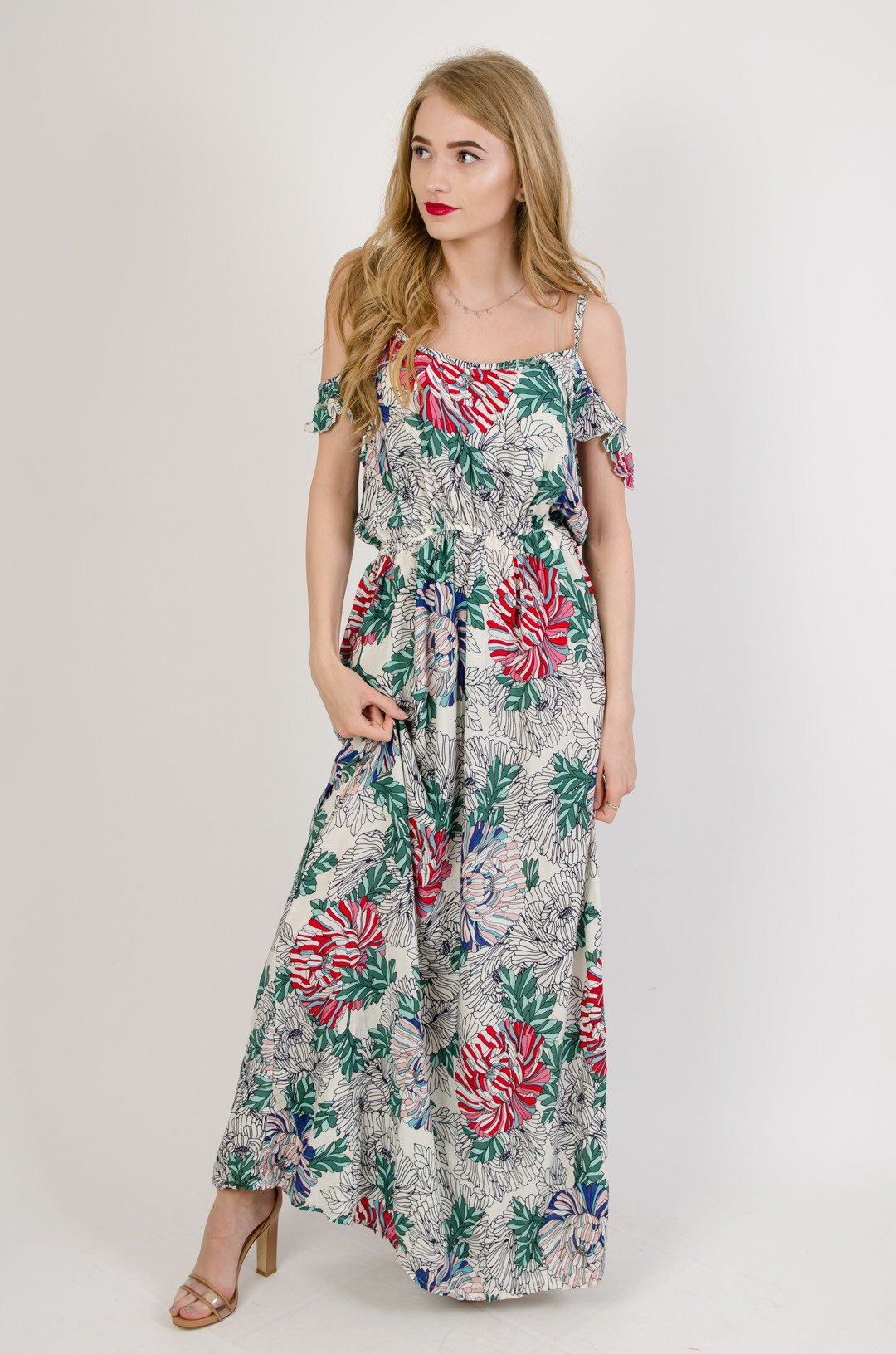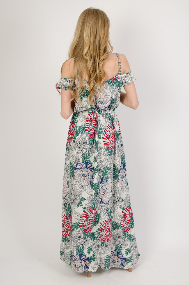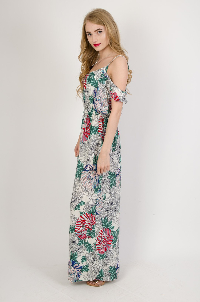 Biała długa sukienka w kwiaty