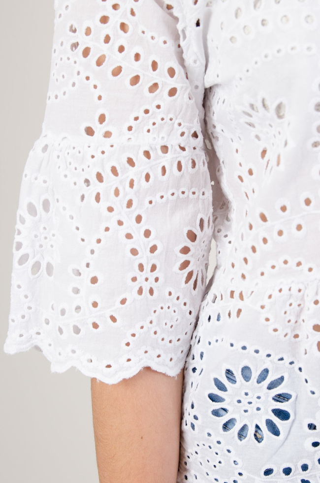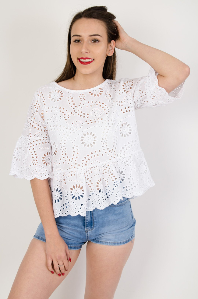 Biała ażurowa bluzka z rękawem 3/4
