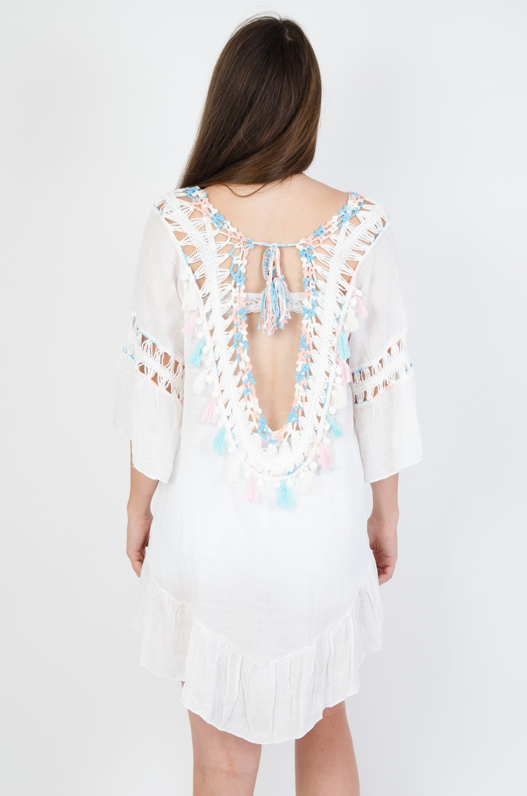 Biała tunika Boho z odkrytymi plecami