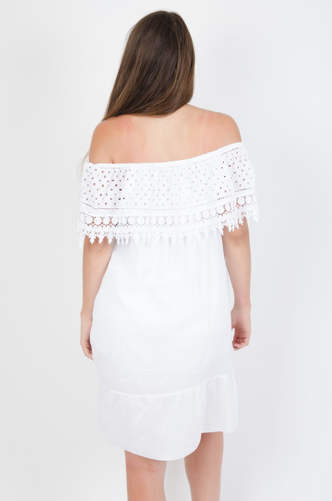 Biała sukienka hiszpanka z ażurowym dekoltem