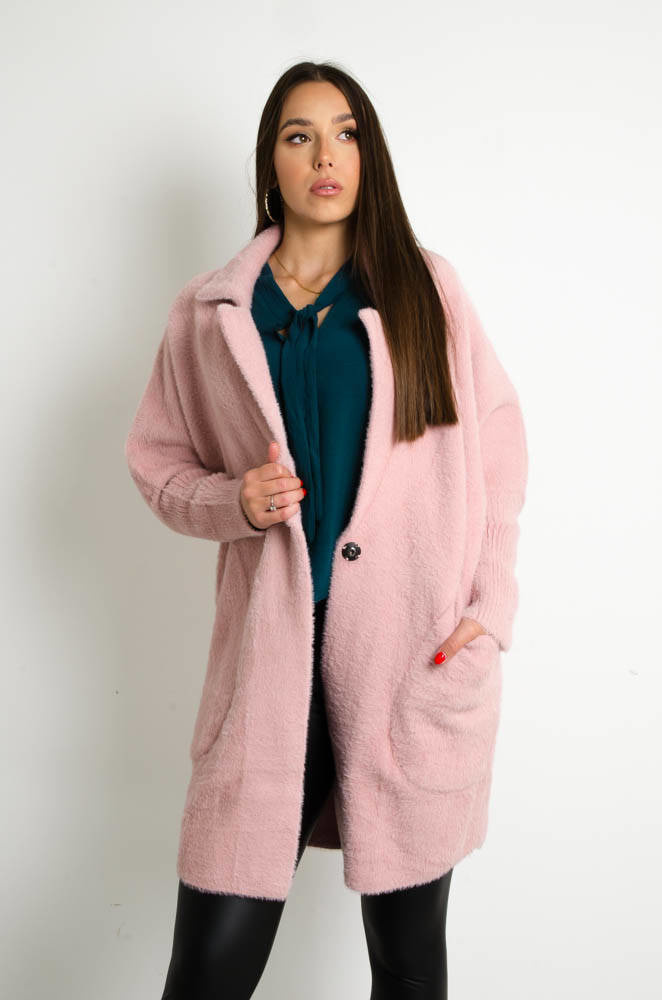 PŁASZCZ DŁUGI WEŁNIANY ALPAKA- RÓŻOWY
