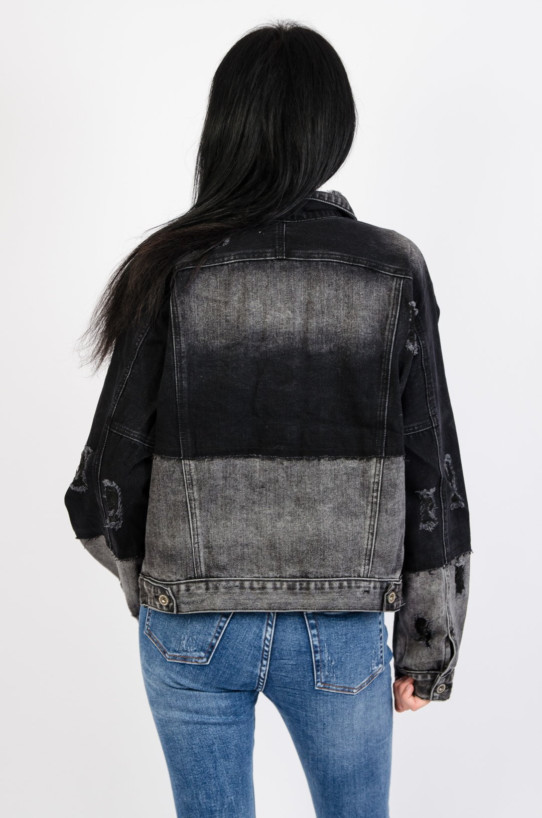 Czarno-szara kurtka jeansowa