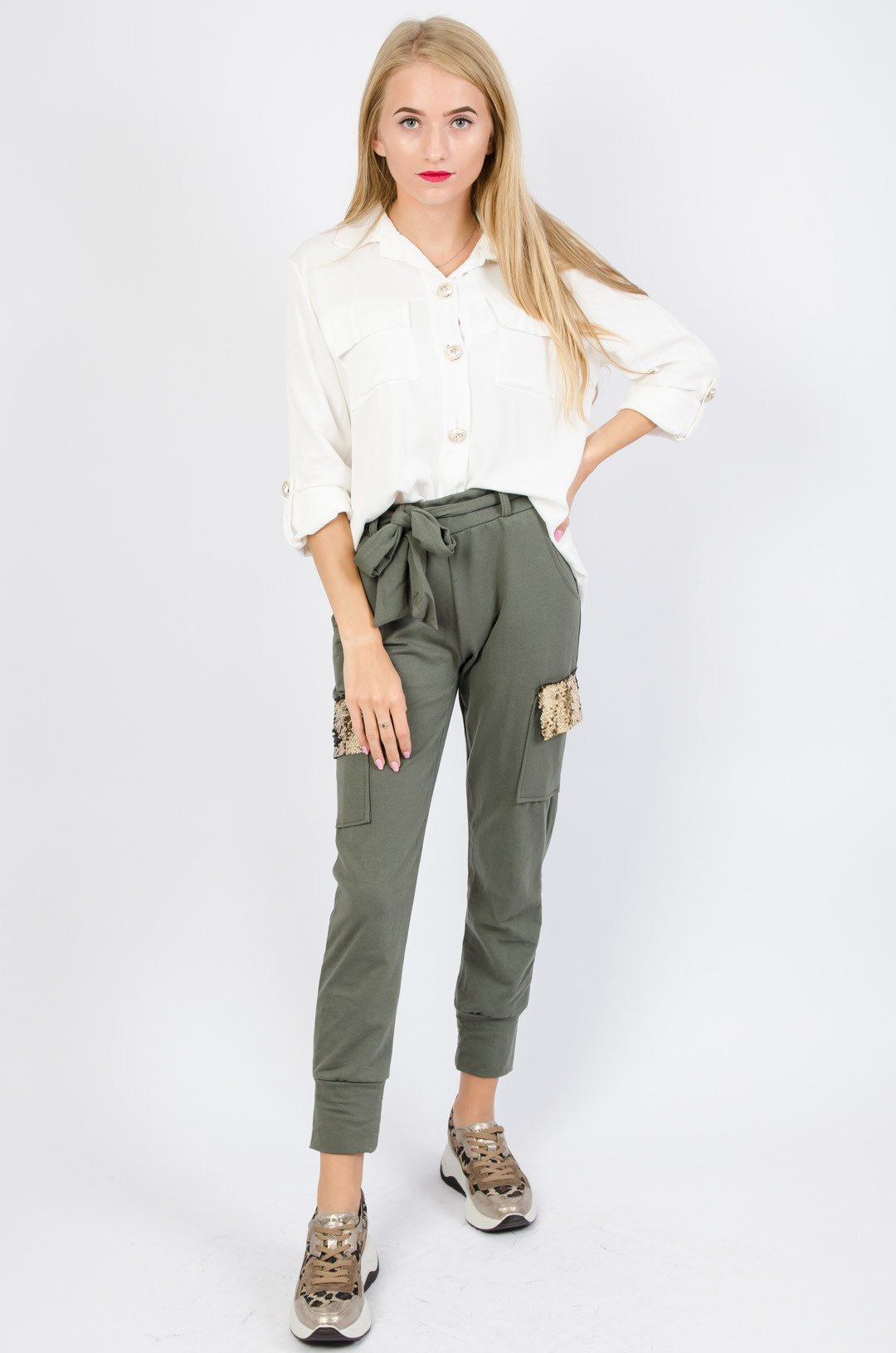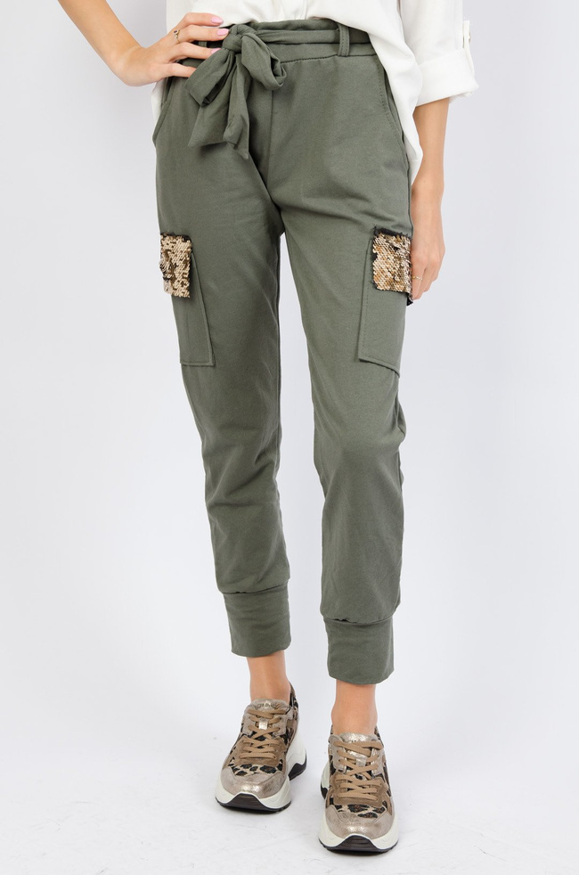 Zielone dresowe bojówki z cekinami na kieszeniach
