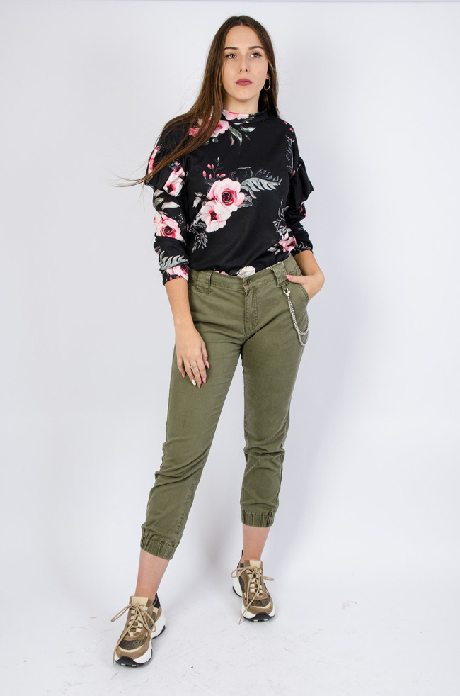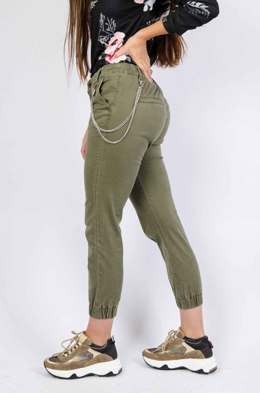 Zielone spodnie bojówki z łańcuszkiem w zestawie