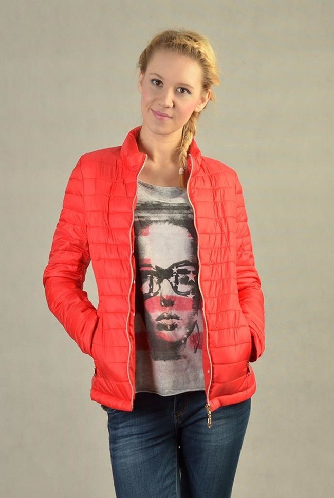 Ortalionowa kurtka pikowana, zapinana na zamek. Z przodu dwie kieszenie, wewnątrz materiał w gwiazdki.