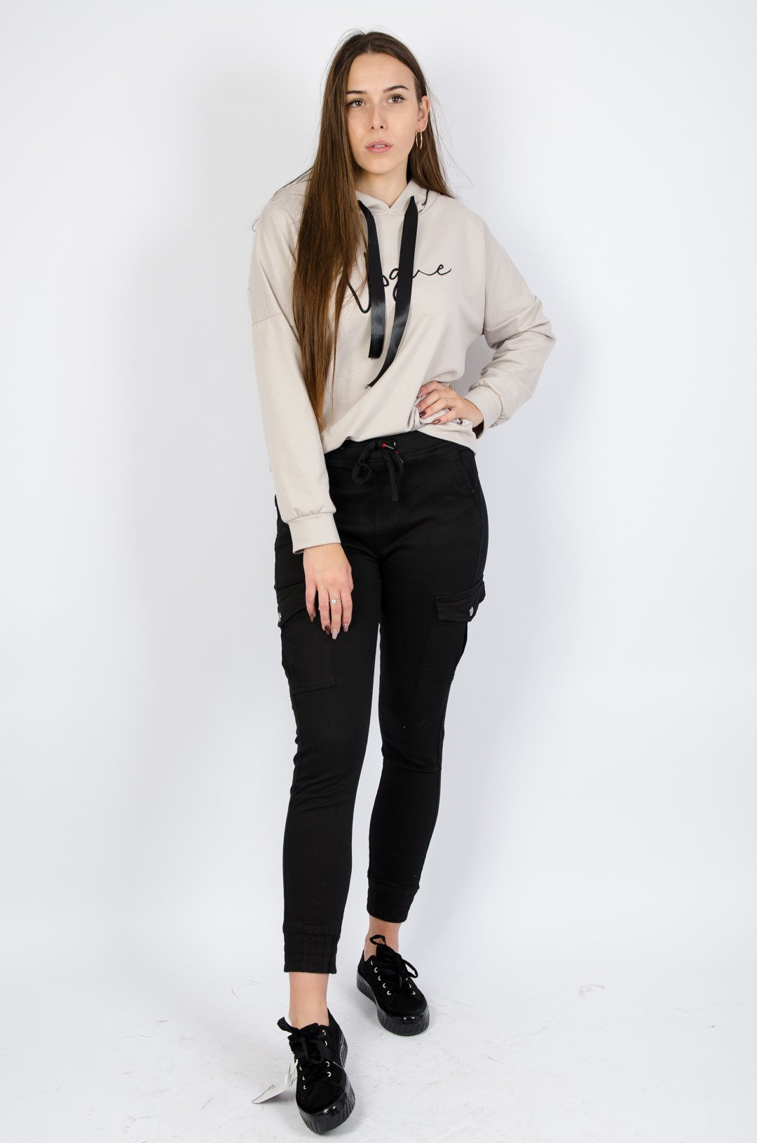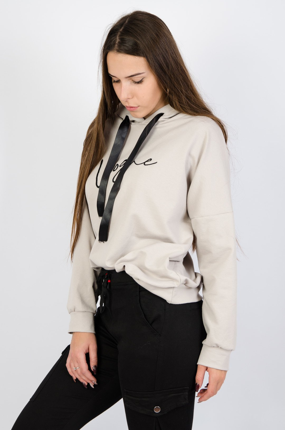 Bluza z kapturem w kolorze beżowym z napisem " vogue"