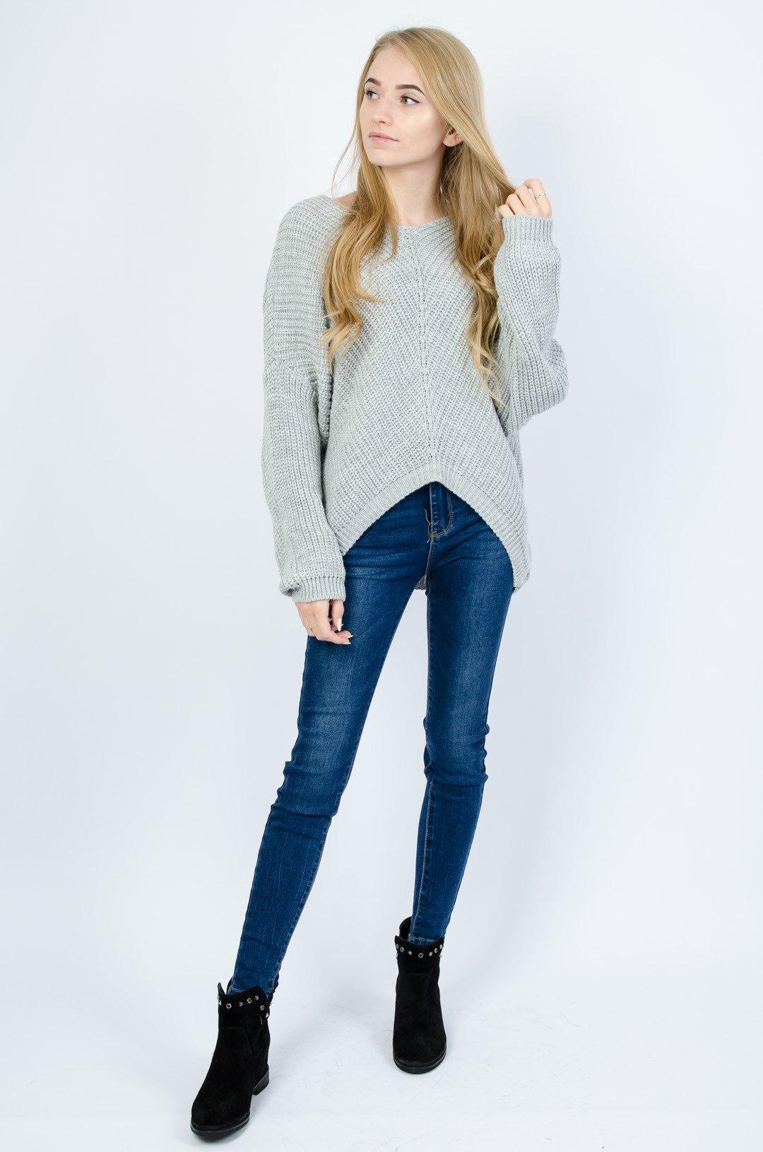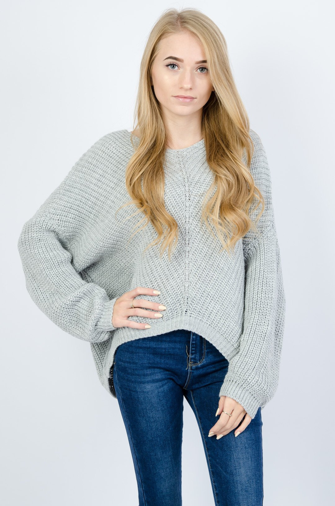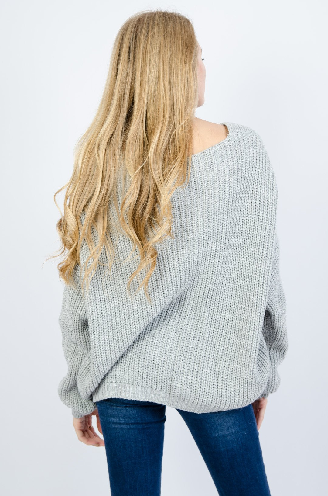 SZARY SWETER PRZEPLATANY SREBRNĄ NITKĄ